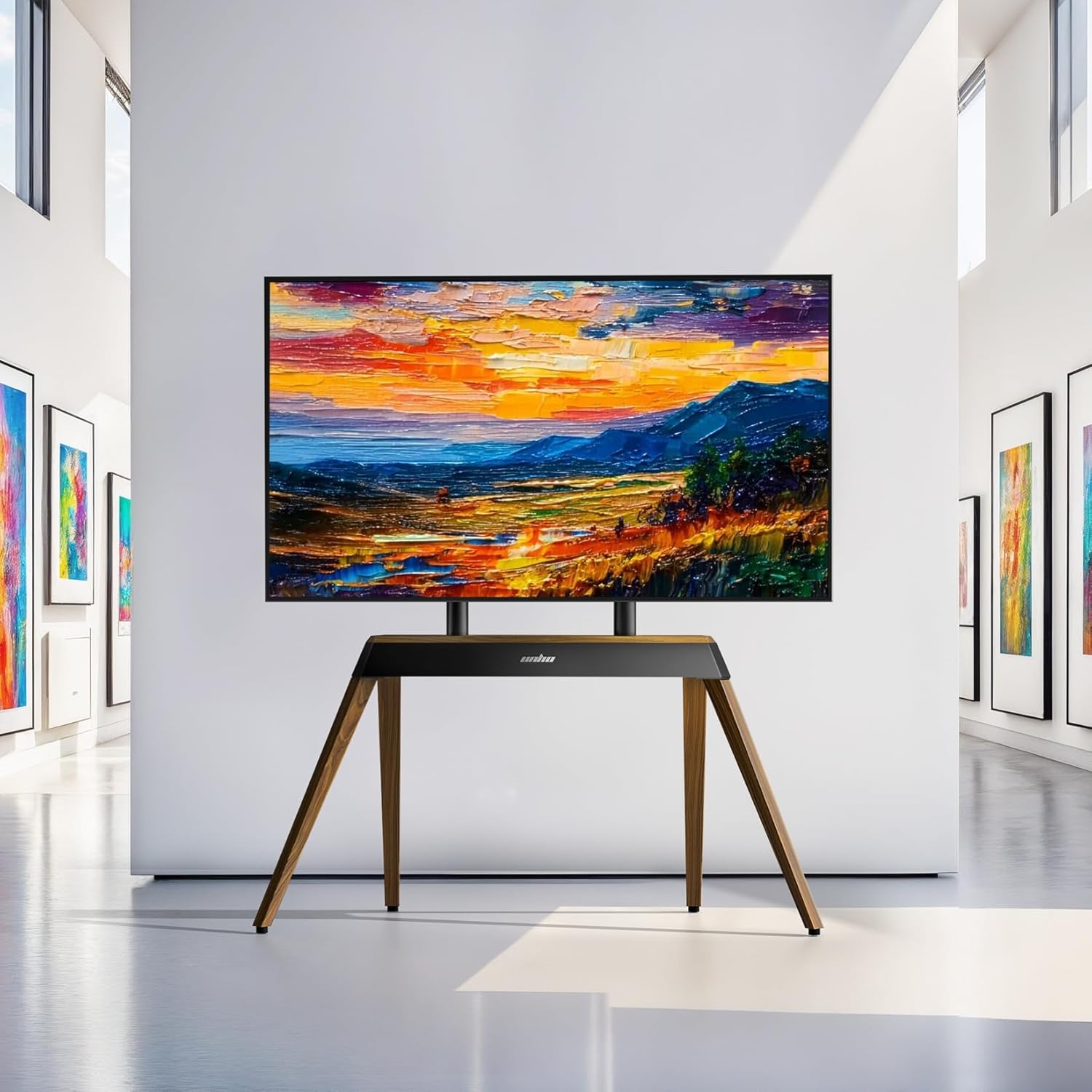 unho Art TV Floor Stand for 40 55 65 75 85 86 Inch TVs, Heavy Duty TV Stand Mount with Large Wood Entertainment Shelf, Modern tv Stands for Living Room Bedroom Up to 198 lbs