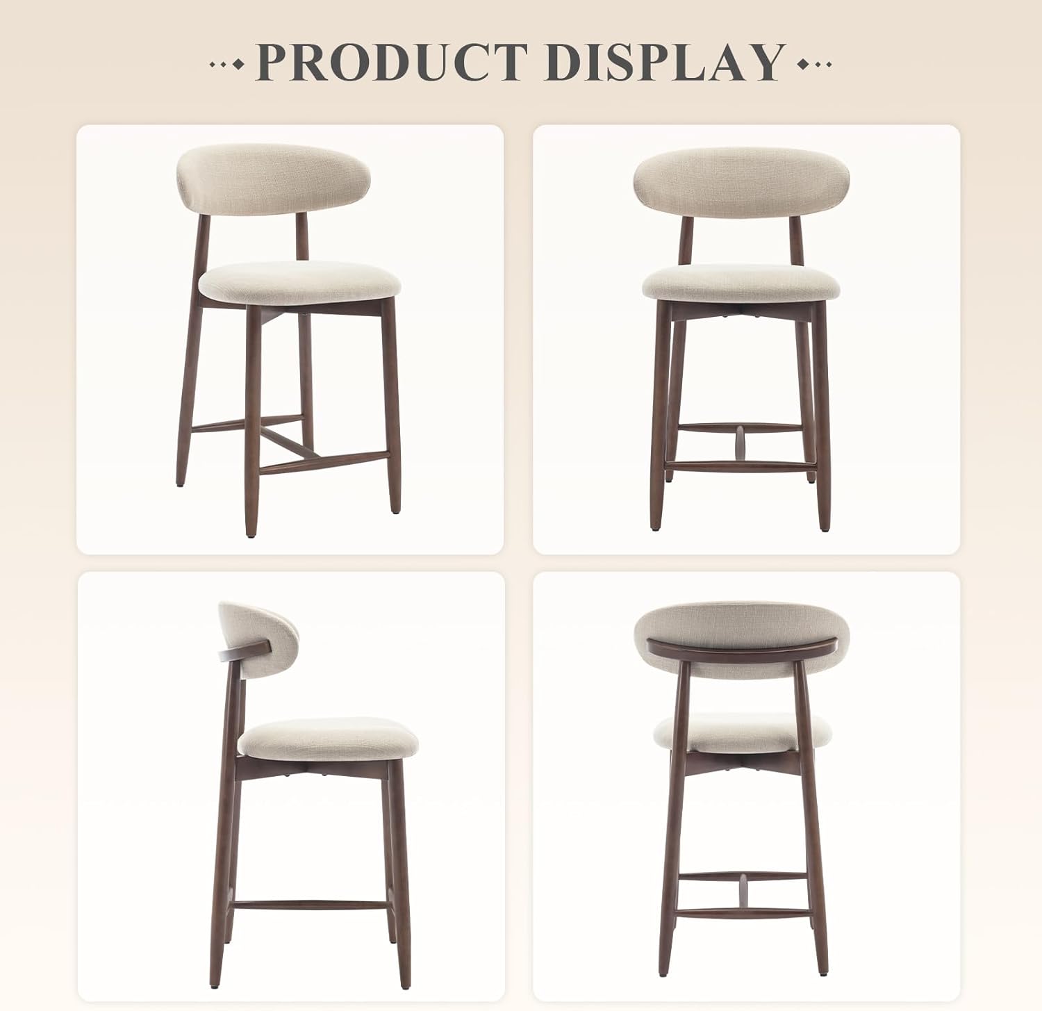 - 【Mid Century Modern Bar Stools】Mid century modern bar stools with wood legs, the great combination of style, comfort, and sturdy. Crafted from premium quality wood, count height bar stools with back are built to last. With a height of 25 inches, upholstered barstools for kitchen island or dining room or bar provide comfortable seating for any people, making them versatile for any space.
