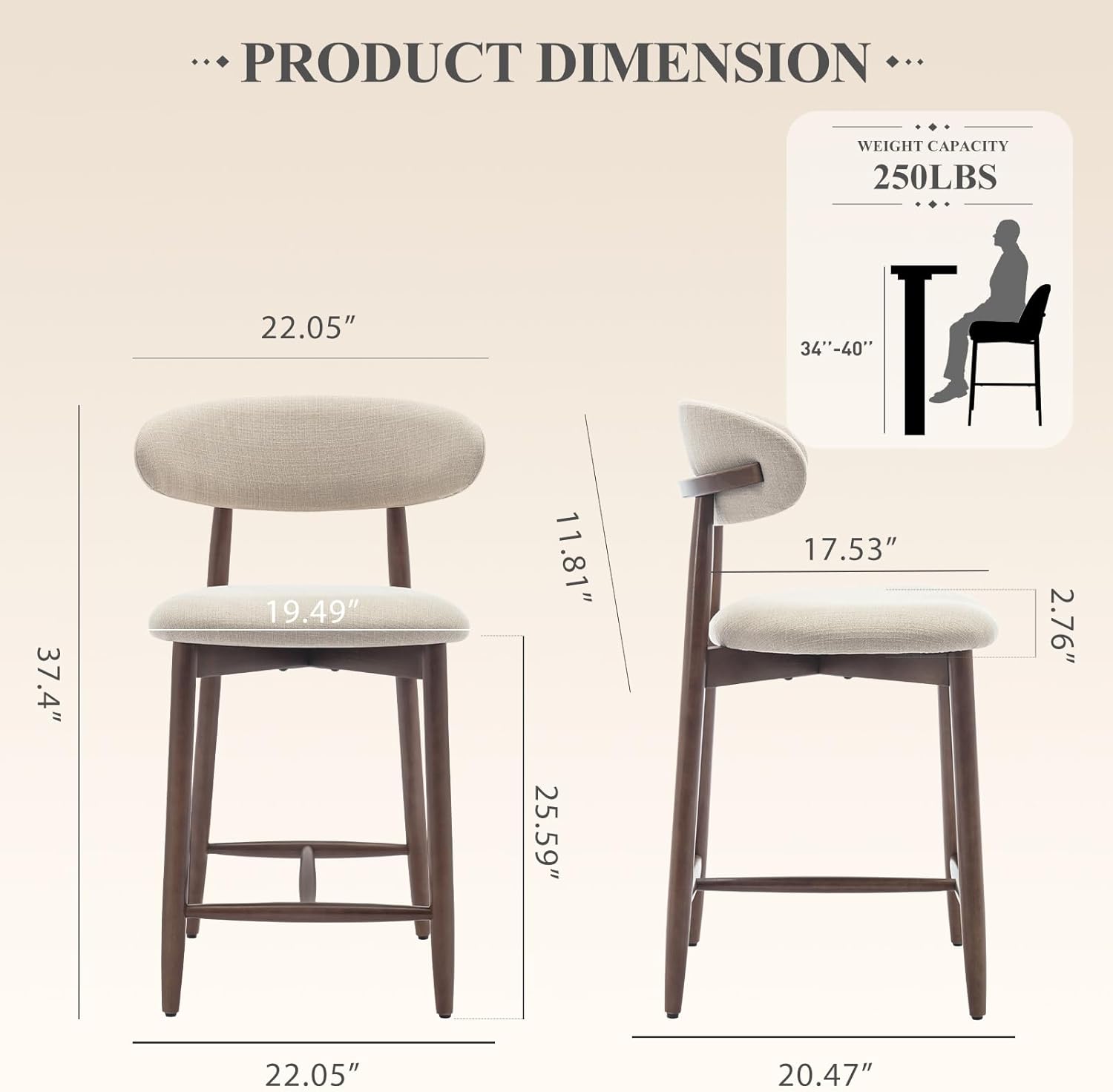 - 【 Ergonomic Design and Comfortable】Comfortable seat with a contoured design. Ergonomically designed seat for optimal comfort during long periods of sitting. The soft cushioned seat provides ample comfort for long periods of sitting, making it perfect for enjoying a meal at the kitchen counter or having a drink at the bar. The sturdy wooden frame ensures stability and durability.