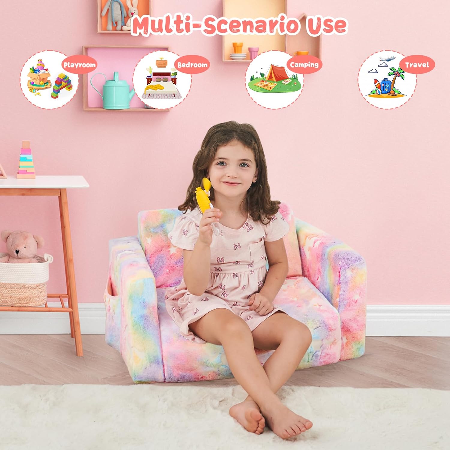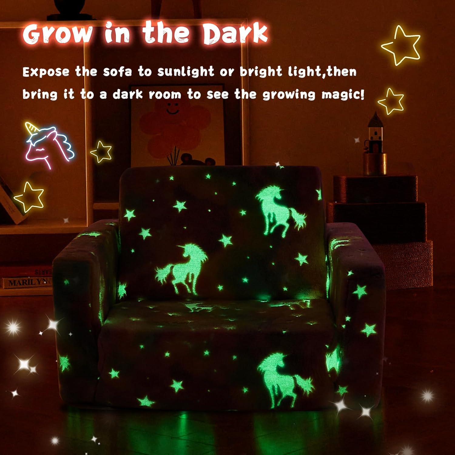Toddler Chair Comfy,2-in-1 Soft Toddler Couch Fold Out for Kids,Convertible Sofa to Lounger,Gift for Girls and Boys Birthday,Unicorn,Medium