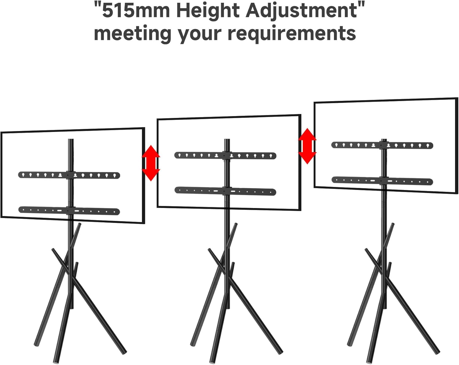 Easel Art TV cart for 43-90 inch TVs Triangular 3-Leg TV Cart with Height Adjustable 60KG Capacity Portable Floor cart for Living Room LS600B