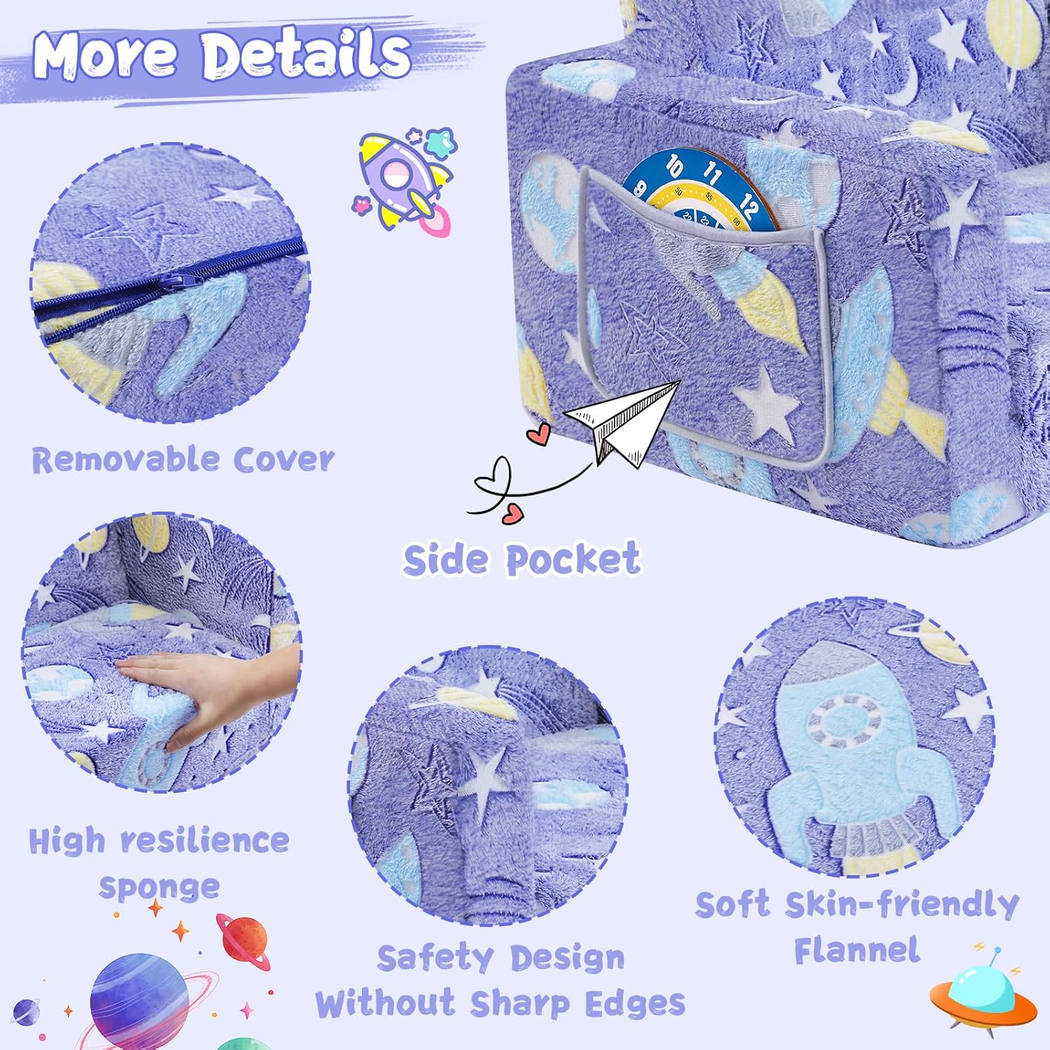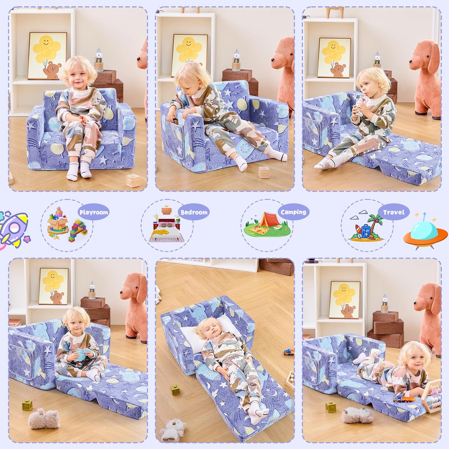 Toddler Chair Comfy,2-in-1 Soft Toddler Couch Fold Out for Kids,Convertible Sofa to Lounger,Gift for Girls and Boys Birthday,Universe