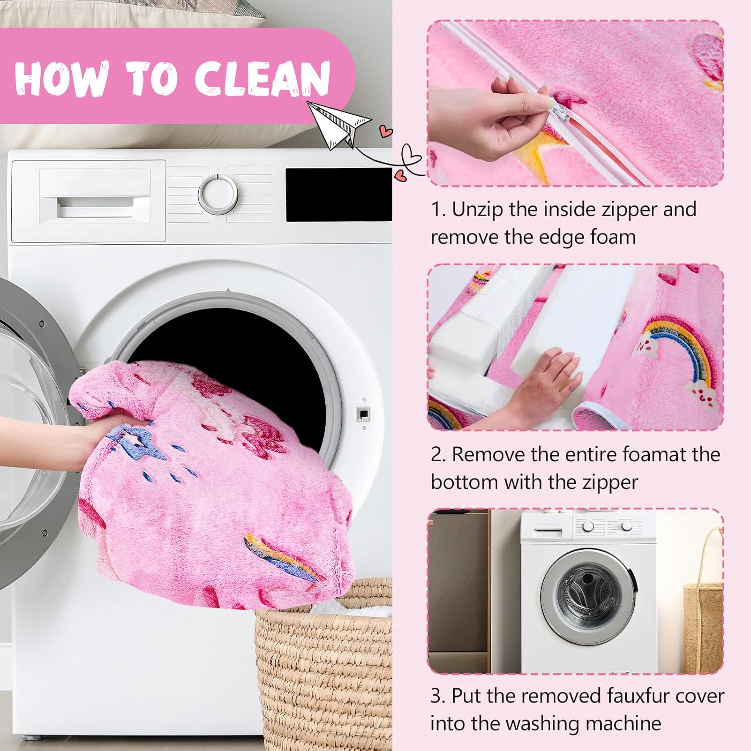 - Add a touch of magic to your child’s space! This foldable kids bean bag chair features a dreamy unicorn with soft pink tie-dye patterns. When the lights go out, its glow-in-the-dark effect shines like gentle starlight, creating a magical bedtime atmosphere. A cozy and enchanting spot where kids can relax, play, and drift off into sweet dreams
