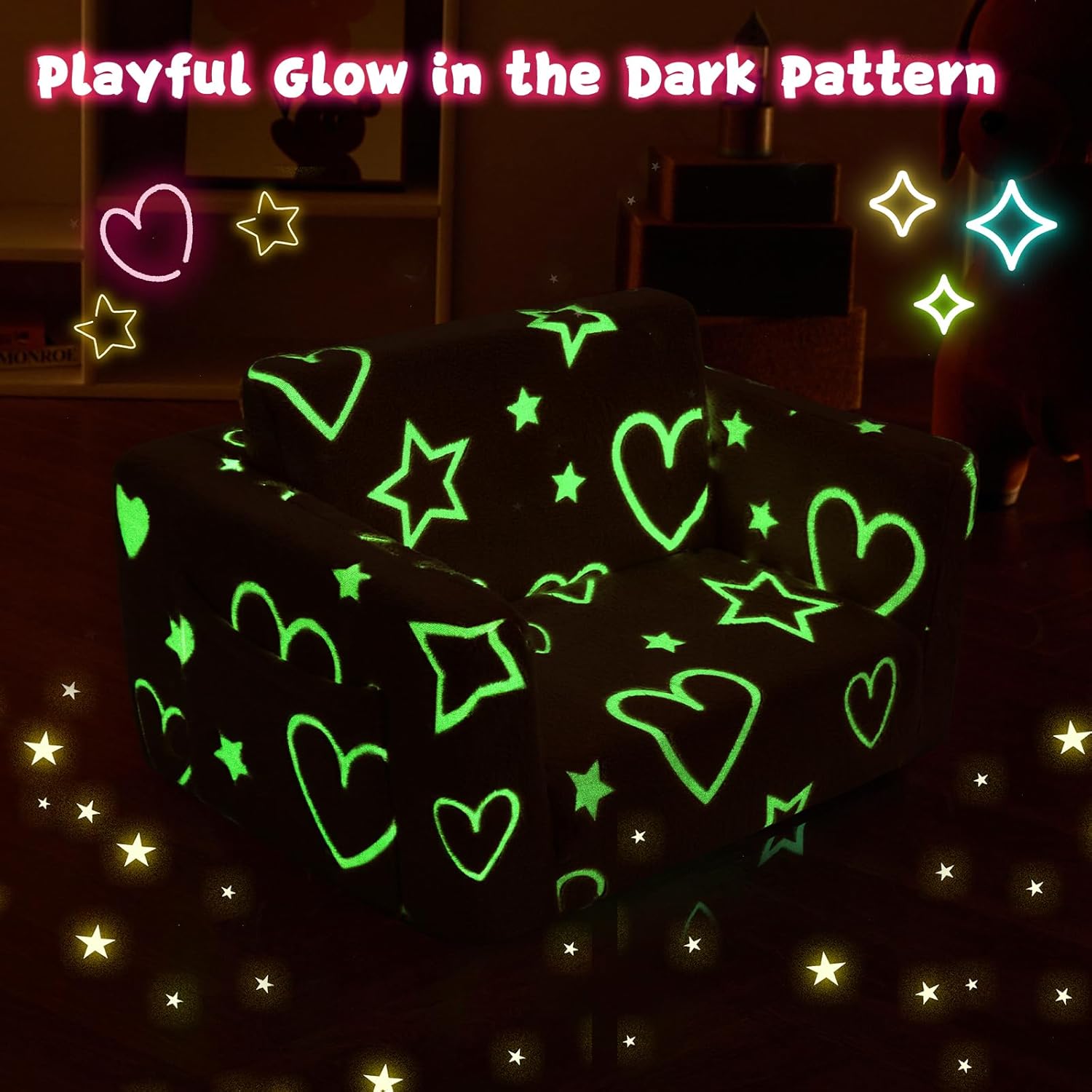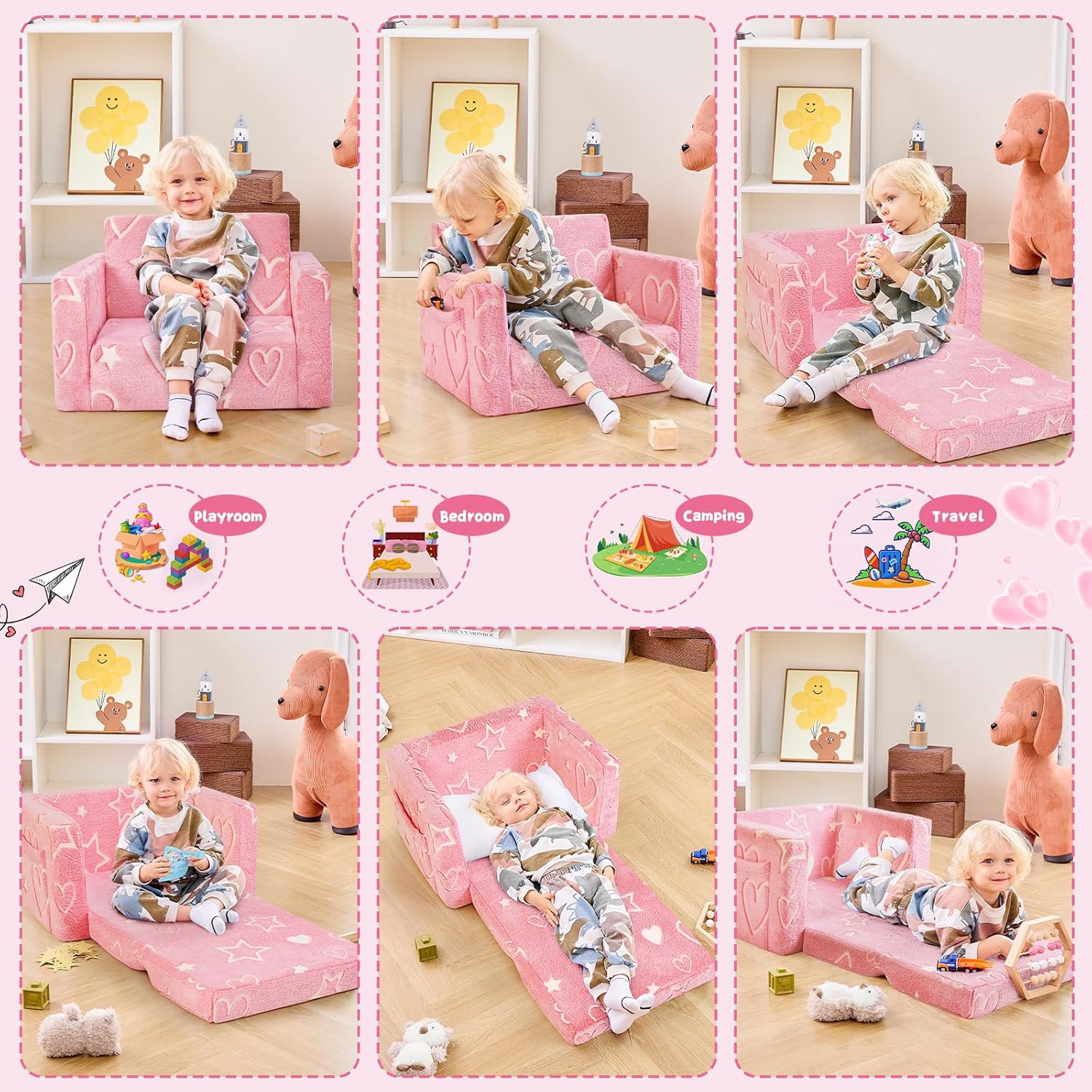 Toddler Chair Comfy,2-in-1 Soft Toddler Couch Fold Out for Kids,Convertible Sofa to Lounger,Gift for Girls and Boys Birthday,Heart,Medium