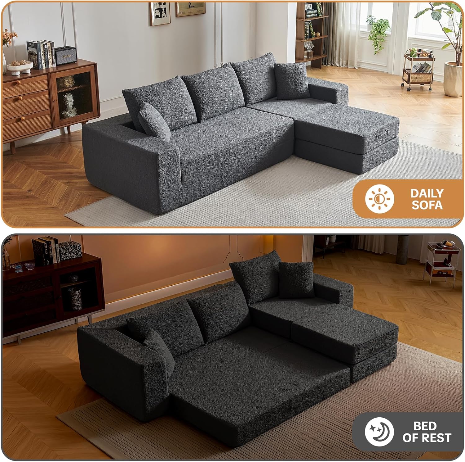 - Foldable & Transform Sofa: Unlock ultimate flexibility. Effortlessly convert this innovative design into a cushion, lounge chair, or spacious bed with one simple pull. Seamlessly transition from cozy sofa to guest-ready bed—ideal for daily relaxation or unexpected overnight stays. Enjoy instant adaptability and premium comfort, perfect for entertaining, reading, or movie nights.