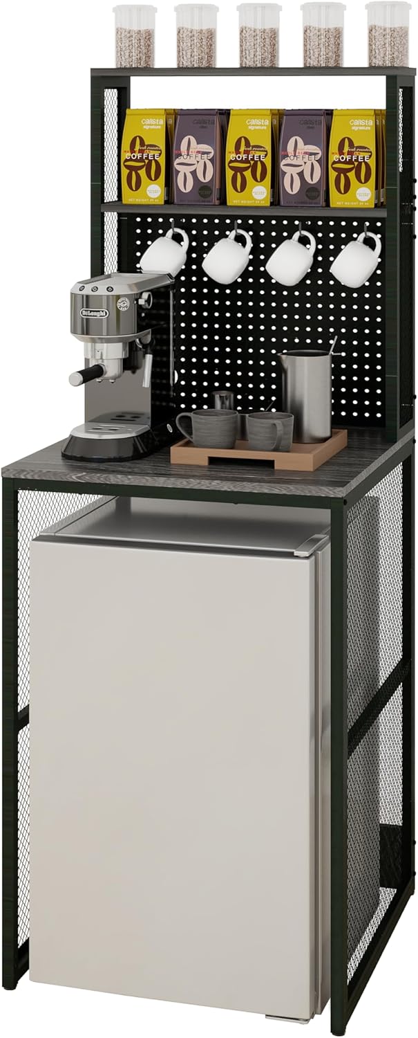 Mini Fridge Stand Shelf with Storage, Bakers Rack Coffee Bar Table Microwave Oven Stand with Mini Fridge Space for Home Kitchen Dorm, Slate Grey