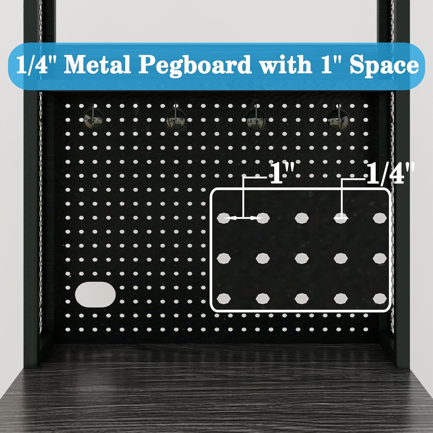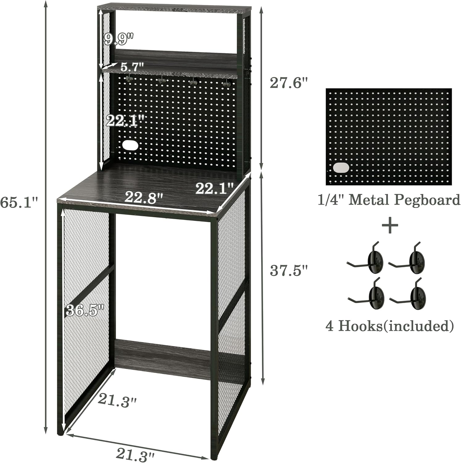 - Ample Storage Space: This coffee bar cabinet equipped with two top shelves, 1/4'' Metal Pegboard and 4 Hooks, provides additional storage space over your compact mini fridge.