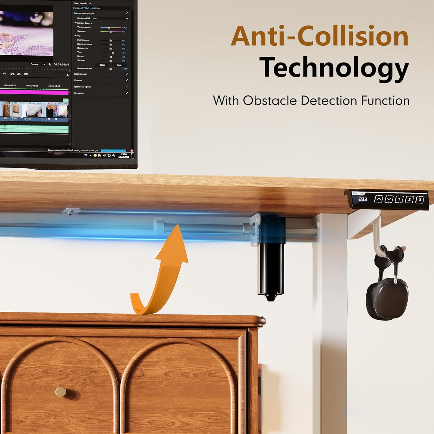 - 【Memory Height Sit Stand Desk】-- The digital display allows you to preset 3 heights, meet different height of your family mumbers. Encounters obstacles when lifting, the stand up desk will move in the opposite to avoid damage your family and your pets.