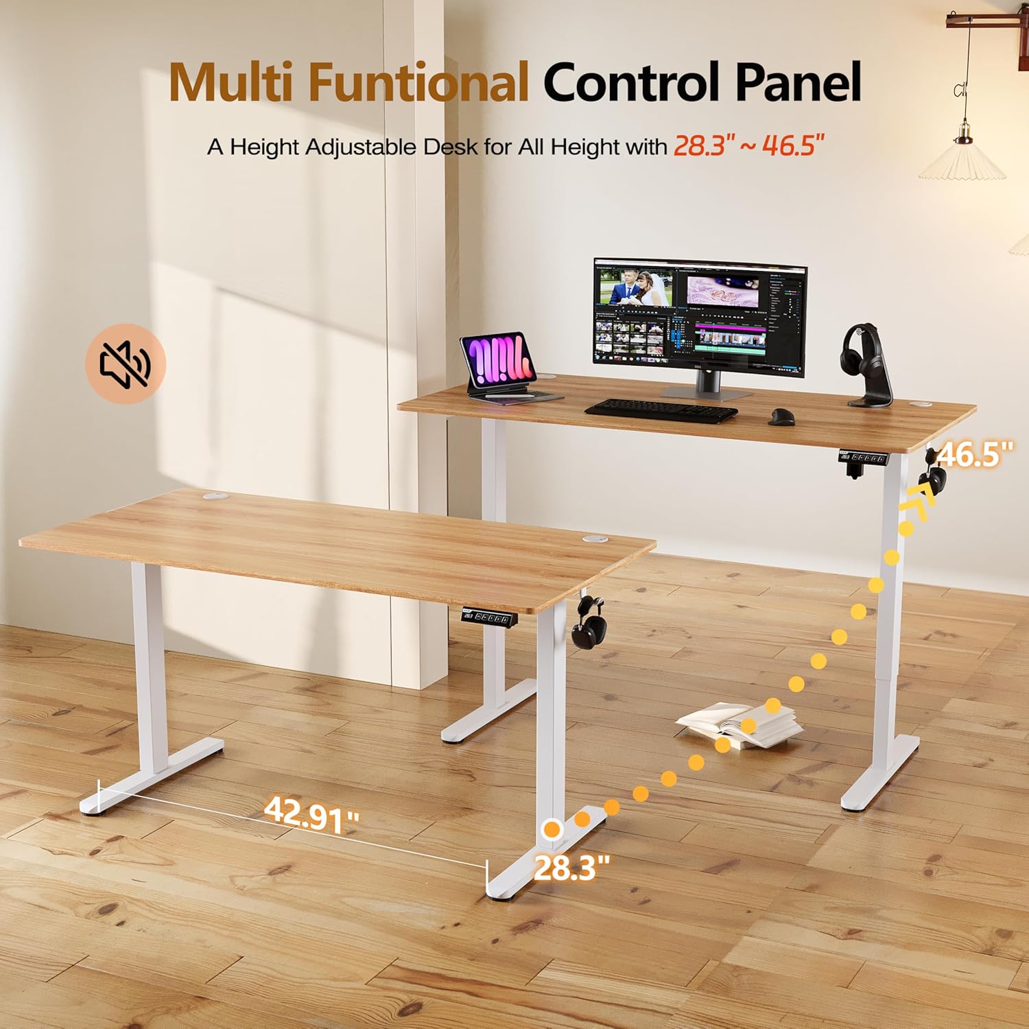 Monomi 55 Inch Large Electric Standing Desk, Height Adjustable Sit Stand Up, Work Home Office Computer PC Desks, Gaming Writing Study Bedroom Rising Table, Natural
