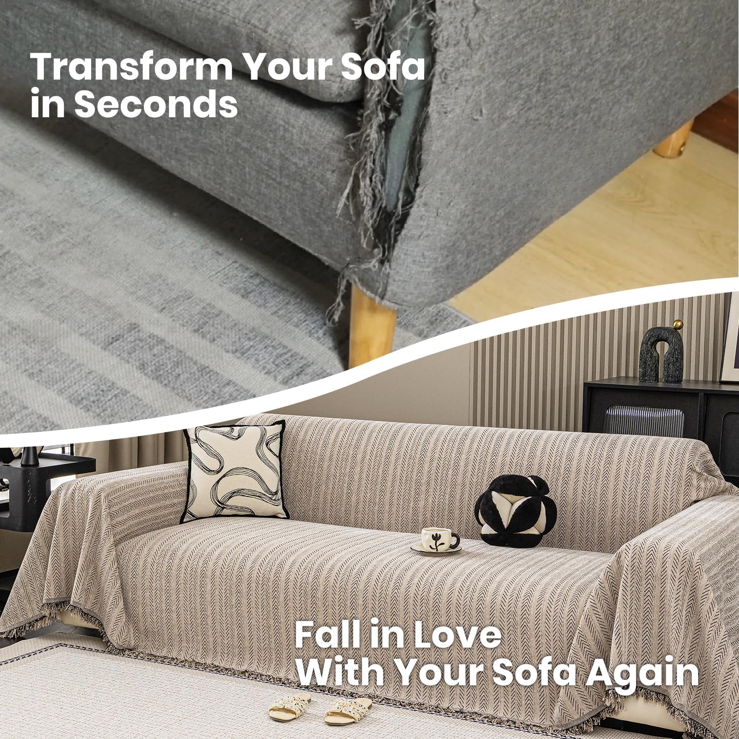 - Classic Style: The sofa slipcover features a classic color-blocking weave, simple and stylish. The edges are adorned with elegant tassels, enhancing the decorative appeal and giving your sofa a fresh new look