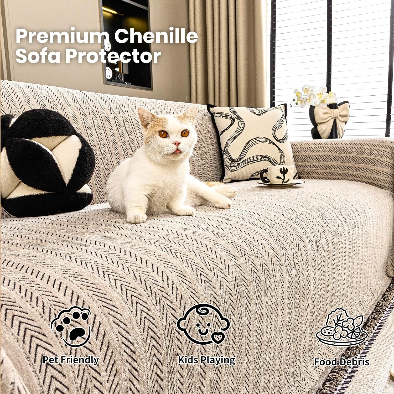 - Selected Materials: Our sofa protector covers are made of premium chenille fabric, crafted with a thickened, high-density weave that makes sitting on the sofa softer and more comfortable. Resistant to pilling, it enhances the durability of the sofa cover