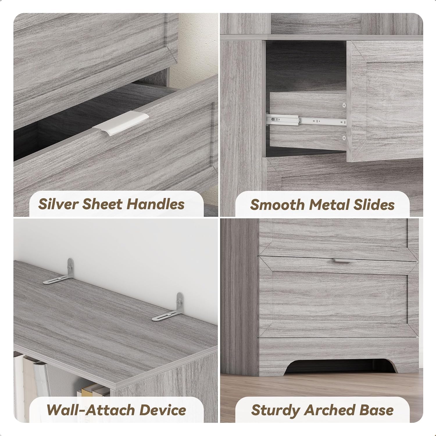 71'' Tall Bookshelf with Drawers,6 Tier Wooden Bookcase Storage Organizer,Freestanding Display Cabinet with Adjustable Shelves for Living Room, Bedroom