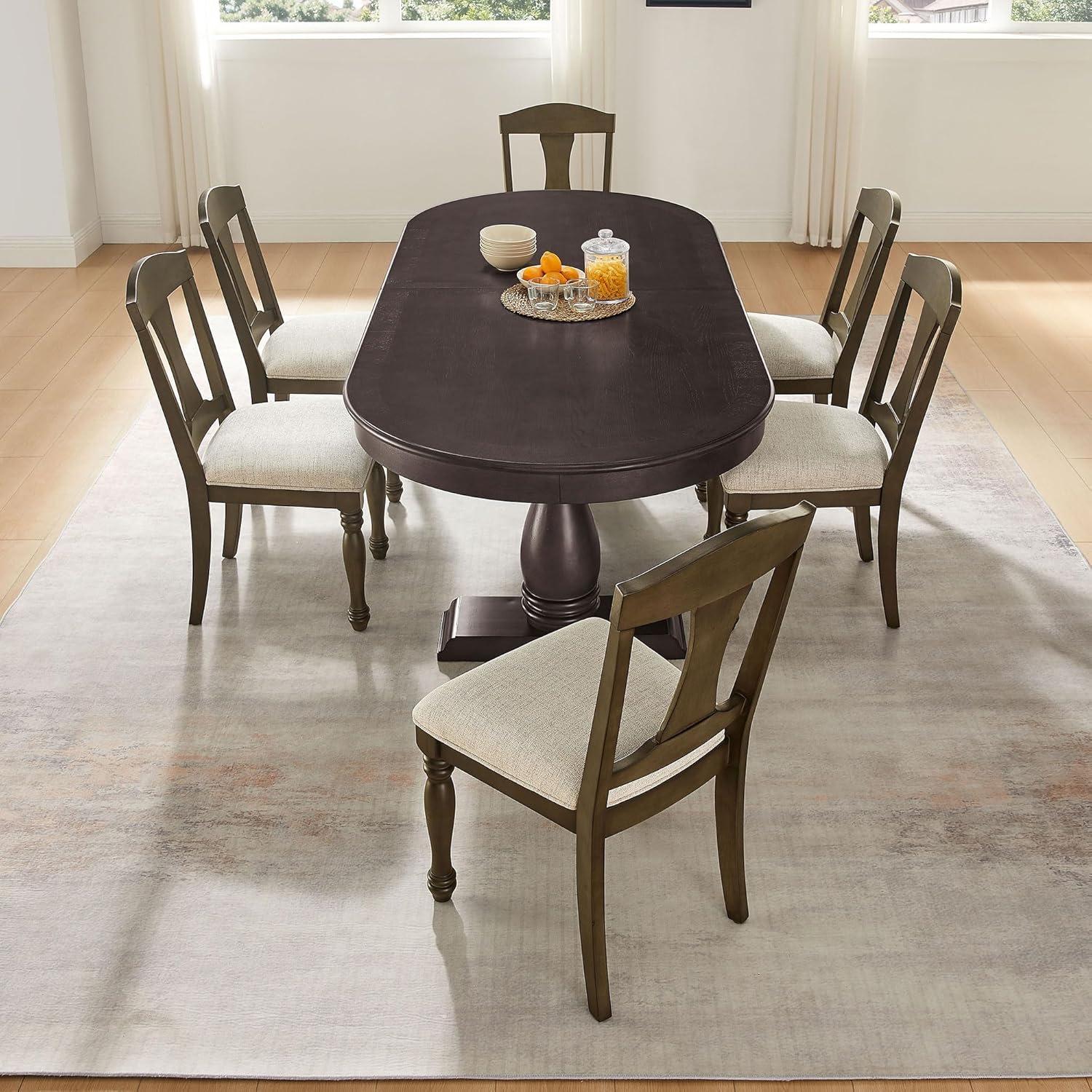- Safety Design & Stable Pedestal Base: This long expandable dining table has sturdy solid wood pedestal, provides extra stability to the table, allowing you to dine with confidence not to worry turn over. The rounded and curved humanized design of the edge of the desktop to avoid bumps and injuries