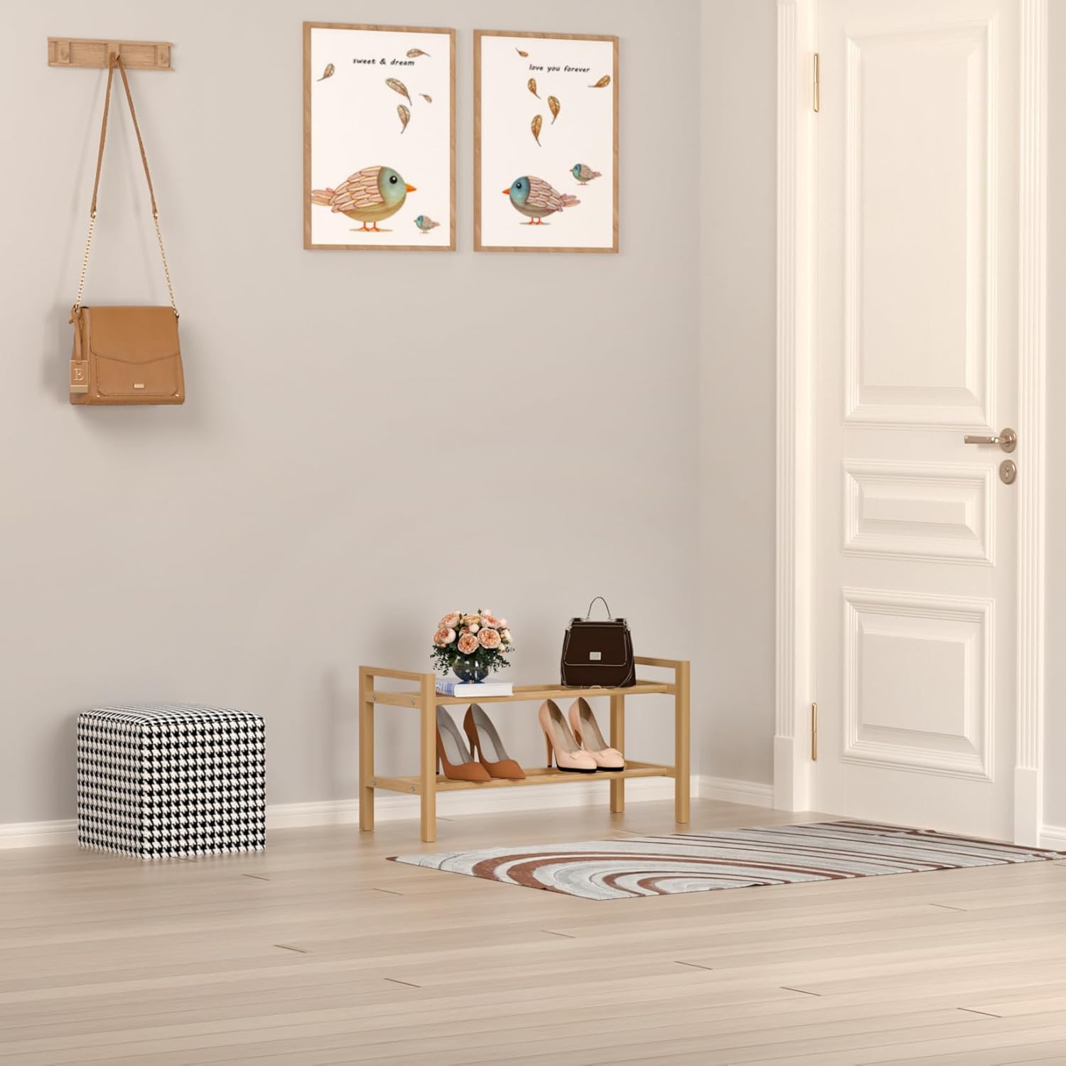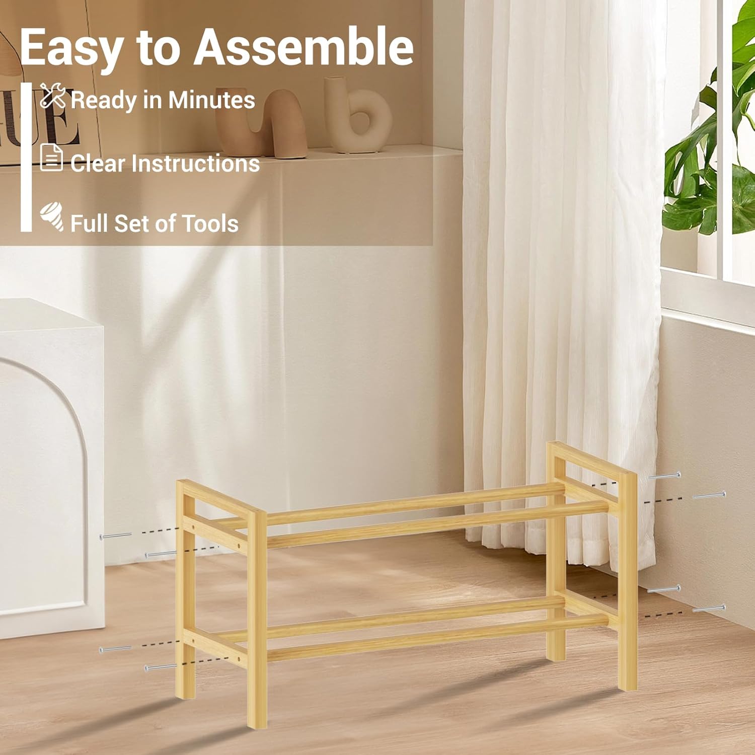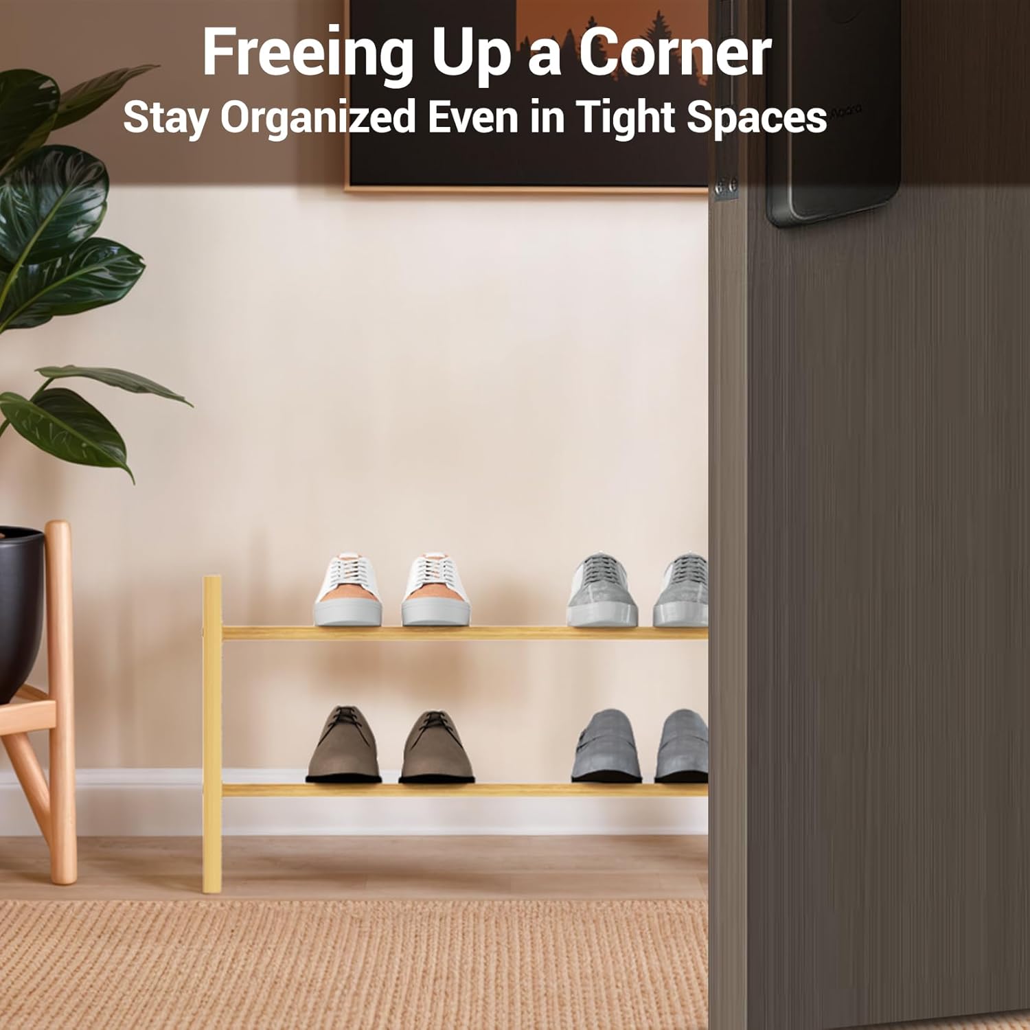 Haddockway Bamboo Shoe Rack for Closet, Free Standing Shoe Organizer with Smooth Round Rods & Convenient Handles, Stackable Shoe Storage Shelf for Entryway, Hallway(Natural, 2-Tier(Small))