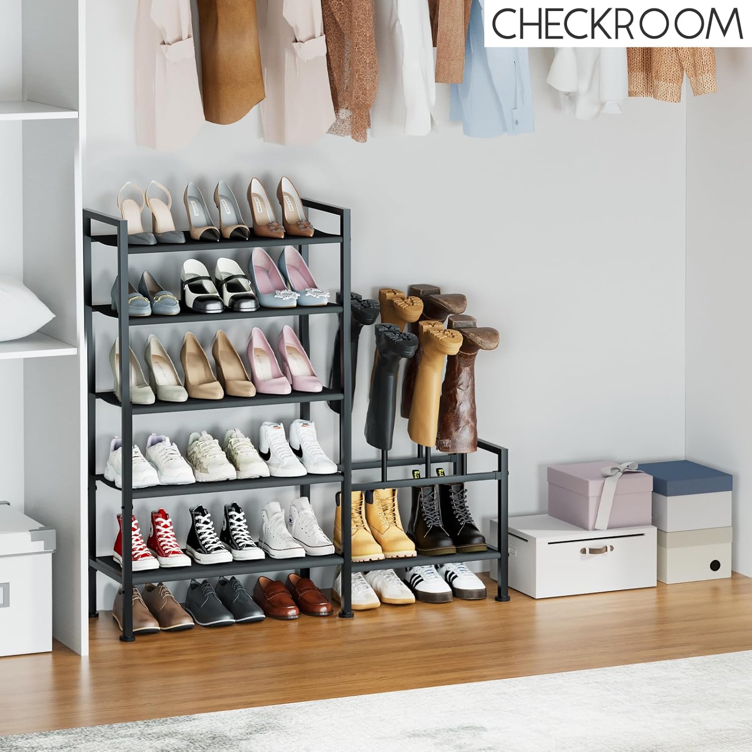 - Large Capacity Storage Up to 25 Pairs: This 5-tier shoe organizer for closet holds 20–25 pairs and 6 pairs of boots, from sneakers to various boots. Perfect for maximizing vertical space in small apartment storage or creating a tidy front door shoe rack for daily access