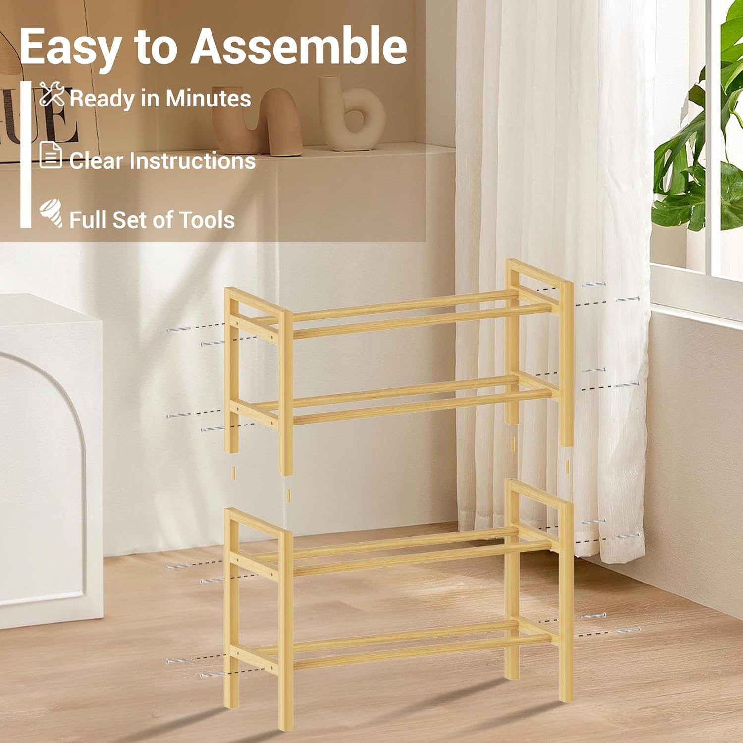 - 【Effortless Assembly】Designed for quick setup,this bamboo shoe rack for entryway can be put together in minutes with little effort. You can also easily remove one or two layers when needed to fit taller shoes. Its smooth wooden surface is easy to wipe clean, making maintenance hassle-free.