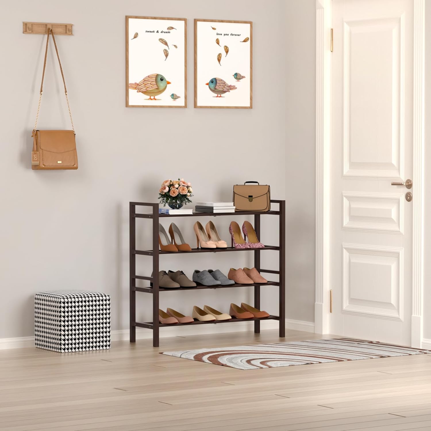 Haddockway Bamboo Shoe Rack for Closet, Free Standing Shoe Organizer with Smooth Round Rods & Convenient Handles, Stackable Shoe Storage Shelf for Entryway, Hallway(Brown, 4-Tier)
