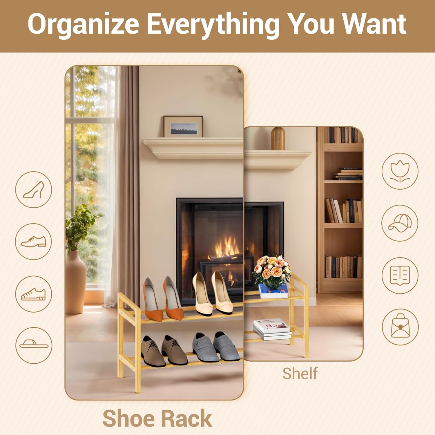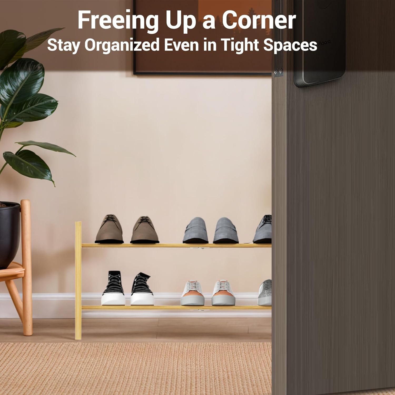 - 【Premium Bamboo Construction】This shoe organizer is crafted from high-quality, eco-friendly bamboo, offering exceptional durability and a natural aesthetic that complements any decor. The sturdy material resists wear and tear while being easy to wipe clean, ensuring long-lasting performance and low maintenance in any home environment.
