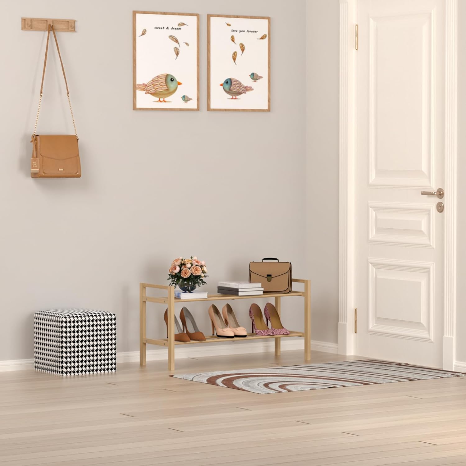 Haddockway Bamboo Shoe Rack for Closet, Free Standing Shoe Organizer with Smooth Round Rods & Convenient Handles, Stackable Shoe Storage Shelf for Entryway, Hallway(Natural, 2-Tier)