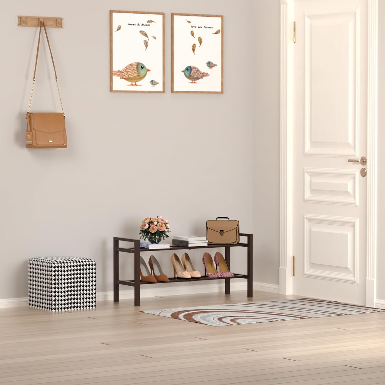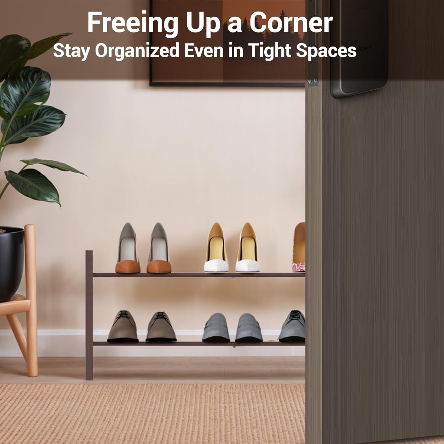 Haddockway Bamboo Shoe Rack for Closet, Free Standing Shoe Organizer with Smooth Round Rods & Convenient Handles, Stackable Shoe Storage Shelf for Entryway, Hallway(Brown, 2-Tier)
