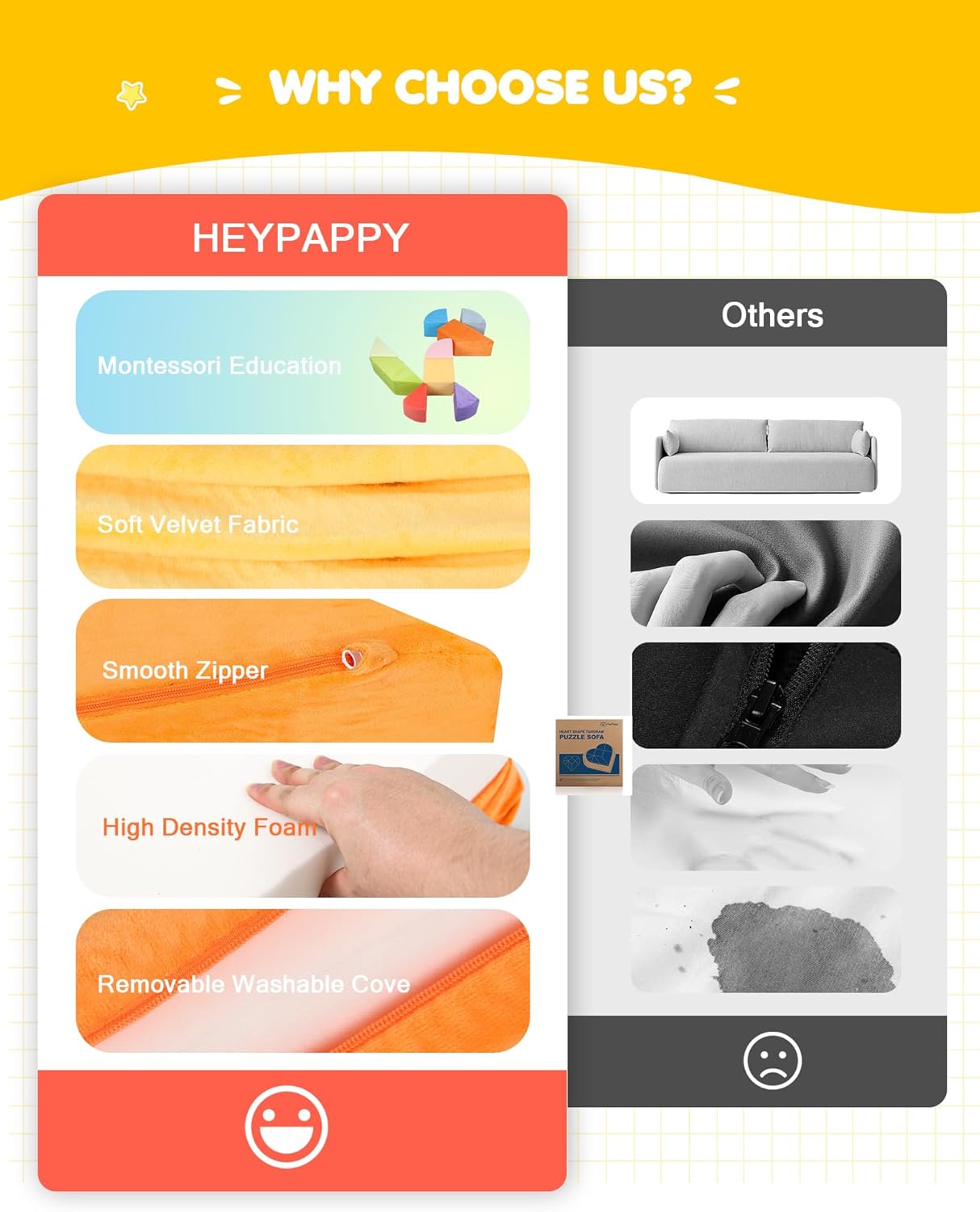 - Endless Configurations: Heypappy kids play couch's modular design allows children to experiment with 1600+patterns, fostering cognitive skills and problem-solving abilities while experiencing a 100% improvement in hands-on capabilities and intellectual growth. Children can create different forms and shapes to experience the endless adventures they desire, and easily stack and store them after playtime. Transform playtime into a learning adventure!