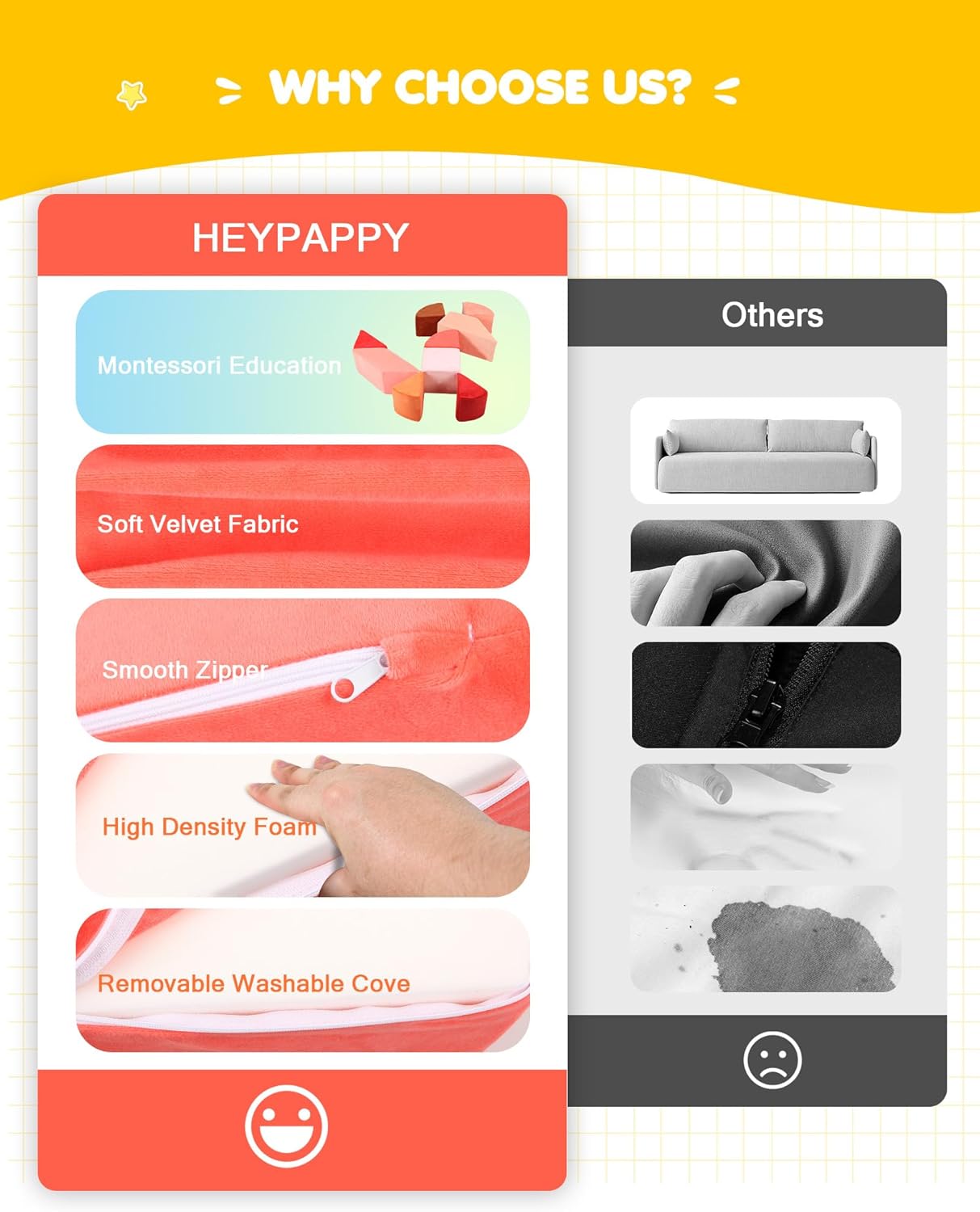 - Endless Configurations: Heypappy kids play couch's modular design allows children to experiment with 1600+patterns, fostering cognitive skills and problem-solving abilities while experiencing a 100% improvement in hands-on capabilities and intellectual growth. Children can create different forms and shapes to experience the endless adventures they desire, and easily stack and store them after playtime. Transform playtime into a learning adventure!