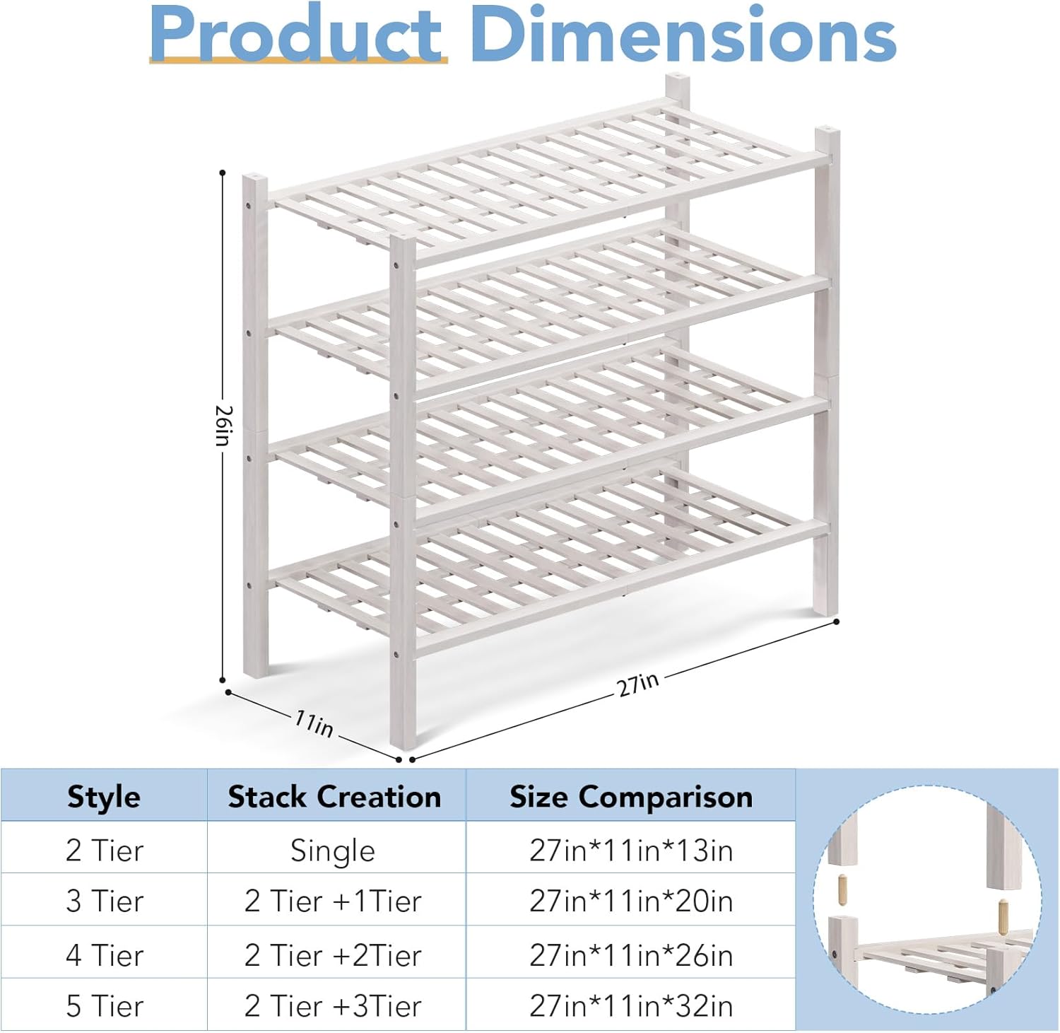 Haddockway 4 Tier Bamboo Shoe Rack Storage Organizer, Multifunctional Free Standing Stackable Shoe Shelf with Grid Panel for Closet,Hallway,Entryway,Small Space 27"x11"x26" (White, 4 Tier)