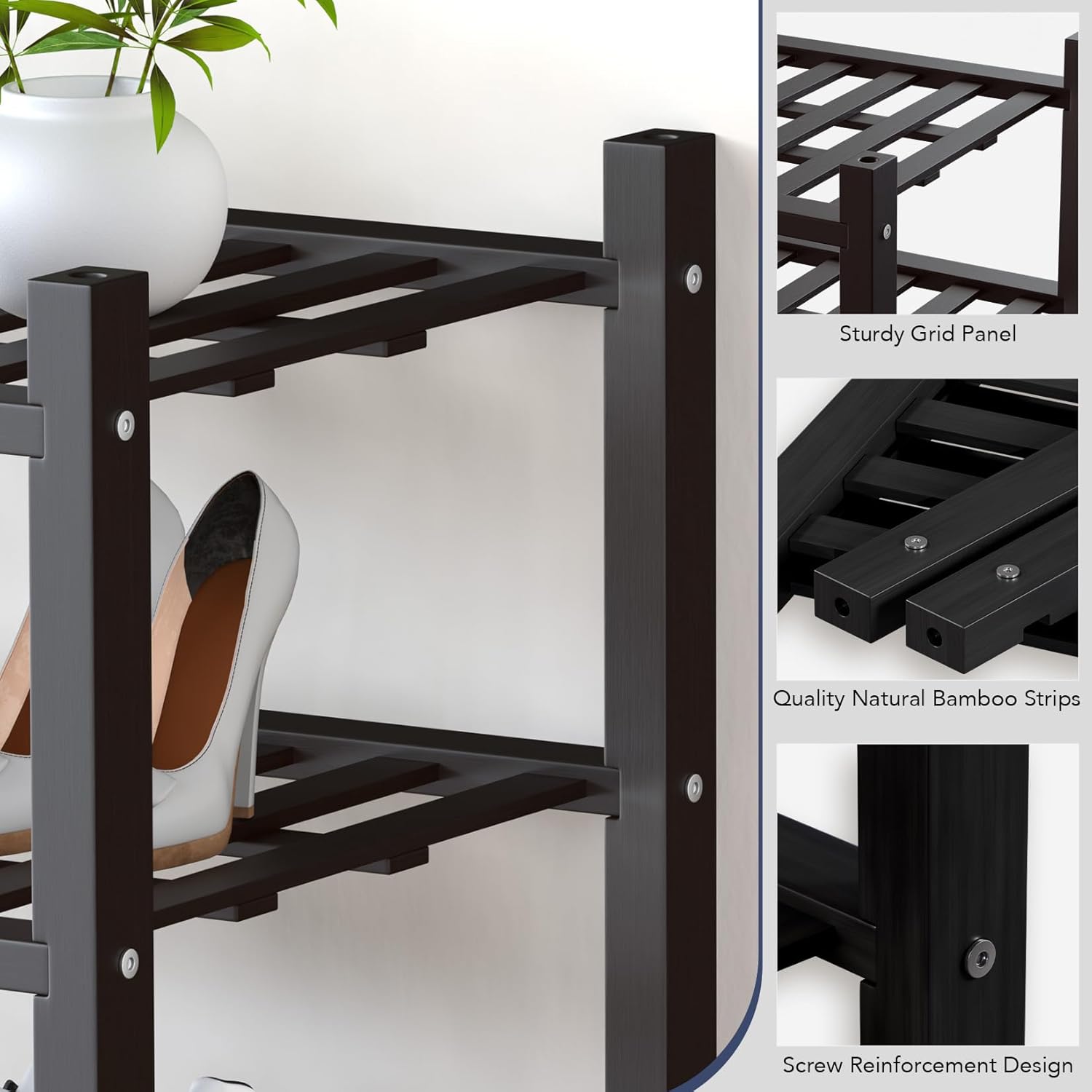 Haddockway small 6 Tier Bamboo Shoe Rack Storage Organizer, Multifunctional Free Standing Stackable Shoe Shelf with Grid Panel for Closet,Hallway,Entryway,Small Space 18"x11"x34"(Black, 6-Tier(Small))