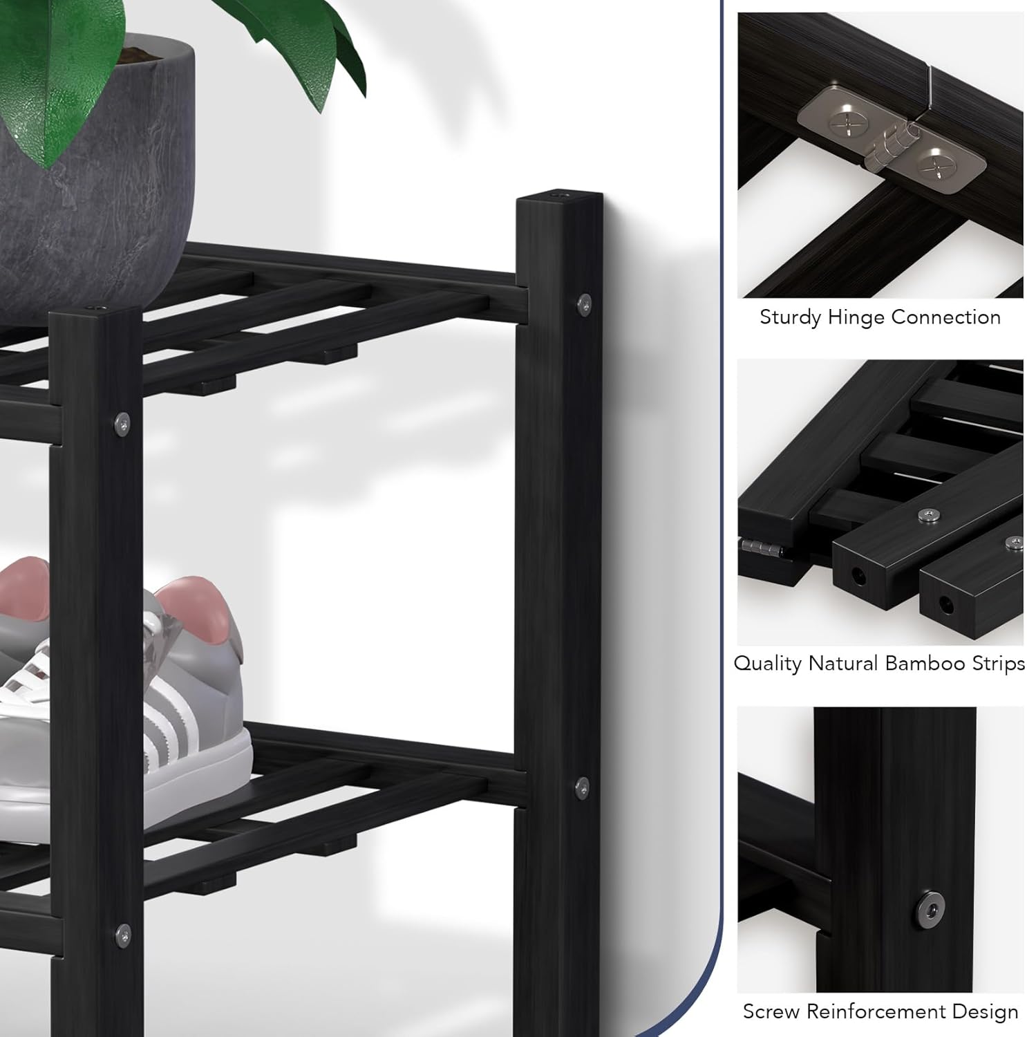 Haddockway 4 Tier Bamboo Shoe Rack Storage Organizer, Multifunctional Free Standing Stackable Shoe Shelf with Grid Panel for Closet,Hallway,Entryway,Small Space 27"x11"x26" (Black, 4 Tier)