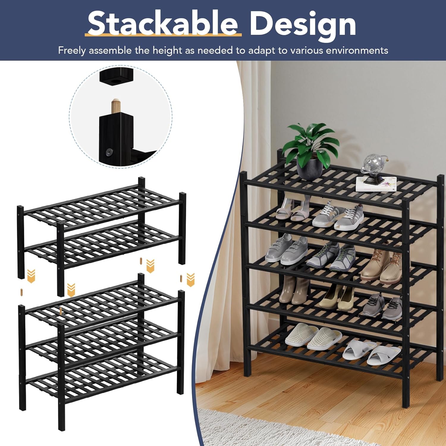 - Small Space, Large Capacity: This stackable shoe organizer makes rational use of space, making a small space three - dimensional so that you can store a lot of things. Each tier is approximately 6.35in,can hold whatever you want to store. The standard shoe rack can hold about three pairs of shoes per layer, the Small - sized one can hold two pairs, and the Long - sized one can hold four pairs without feeling crowded. The rational use of space makes your home neater and more organized