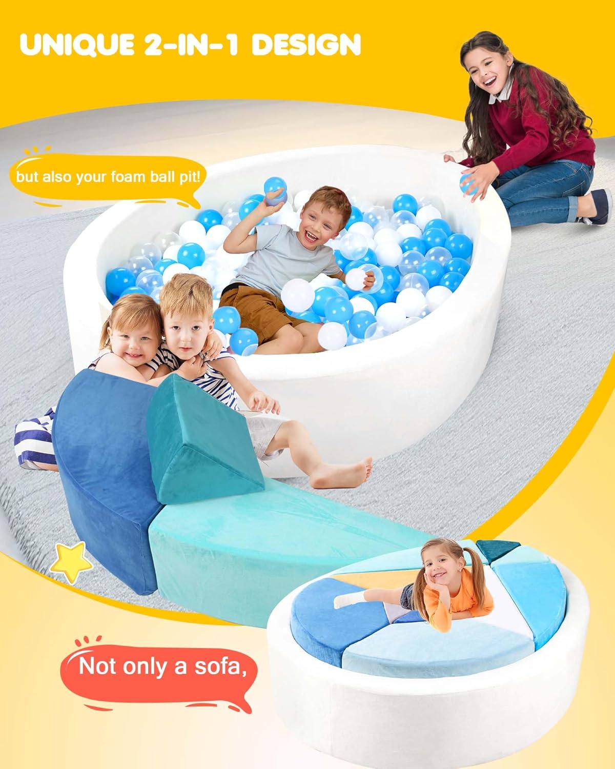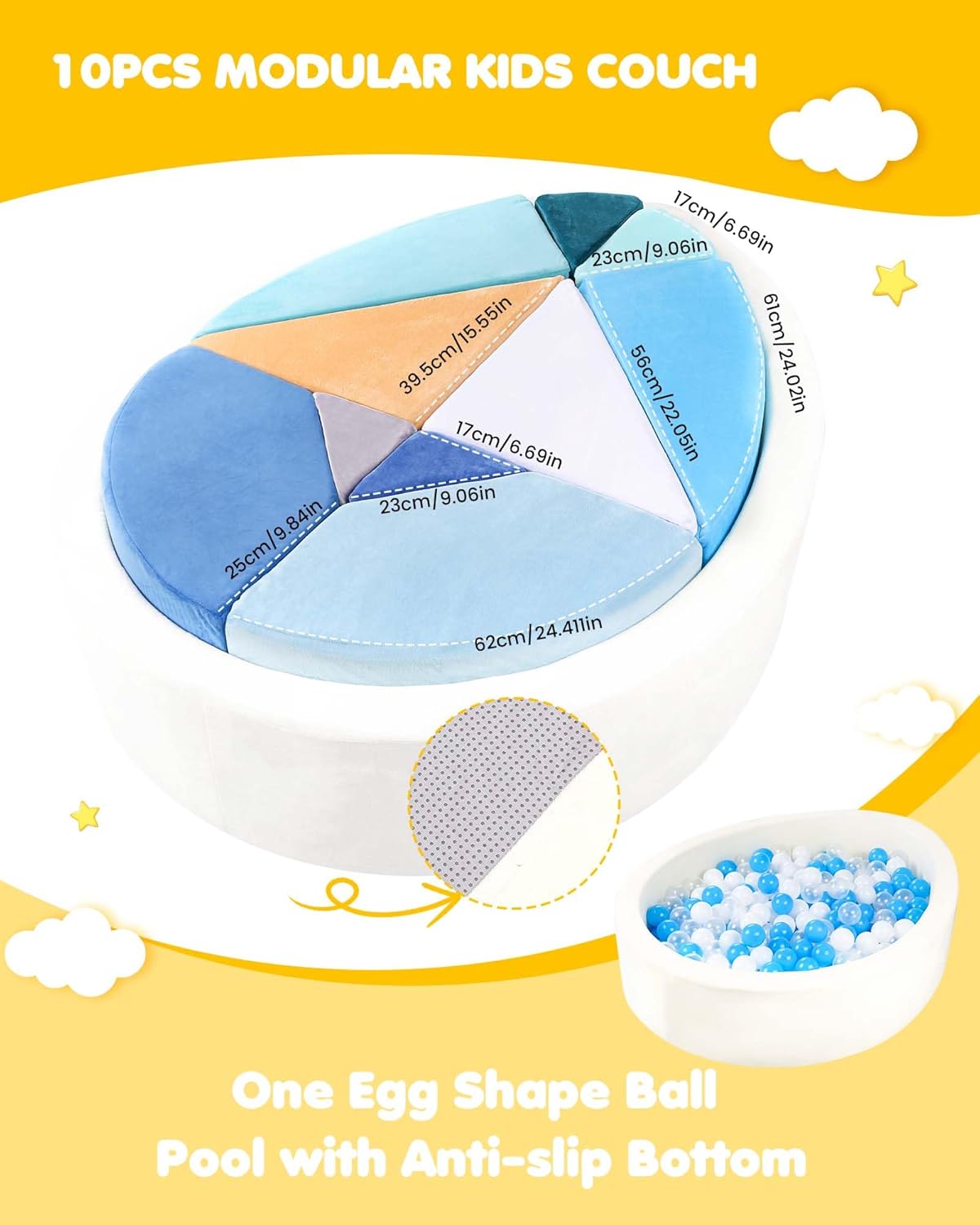 - Ideal Gift for Your Child : This modular play couch comes with 10 pieces of different shapes that can be endlessly combined, inspiring children's imagination and creativity. Also, it includes an unique egg-shape ball pit with inner mat and anti slip bottom to enhance safety and fun, which is your ideal gift choice. The flexibility of the design allows for adaptability as your child grows, ensuring that the play couch remains engaging and age-appropriate for years to come.