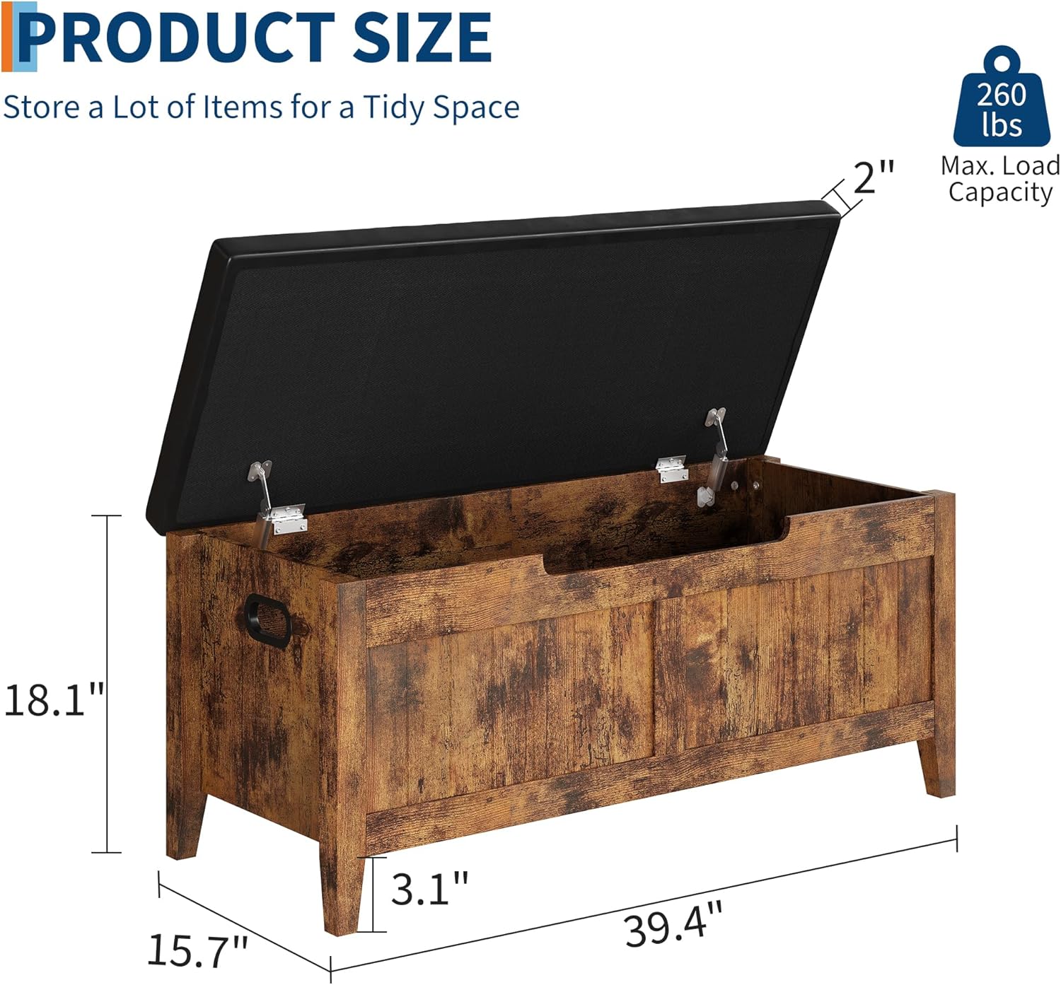 - Durable Build: Engineered for strength with high-quality particle board and reinforced 15mm thick walls, supporting up to 260 lbs. The soft padded top adds comfortable seating and elegant style