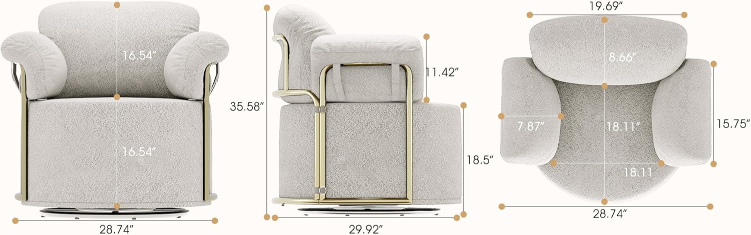 - Effortless 360° Rotation: This swivel lounge chair comes with a 360° swivel base that allows the round swivel chair to provide silky smooth swivel convenience. Smooth-swivel metal turntable and sturdy base allow seamless rotation for dynamic conversation, TV viewing, or workspace flexibility—no more straining to reach nearby items.