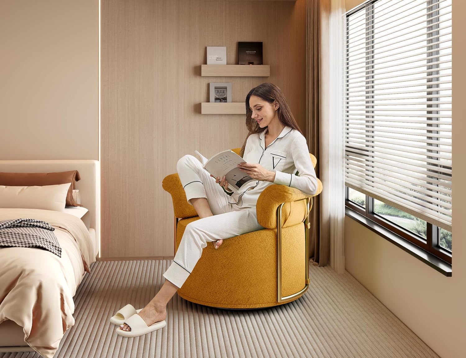 - Effortless 360° Rotation: This swivel lounge chair comes with a 360° swivel base that allows the round swivel chair to provide silky smooth swivel convenience. Smooth-swivel metal turntable and sturdy base allow seamless rotation for dynamic conversation, TV viewing, or workspace flexibility—no more straining to reach nearby items.