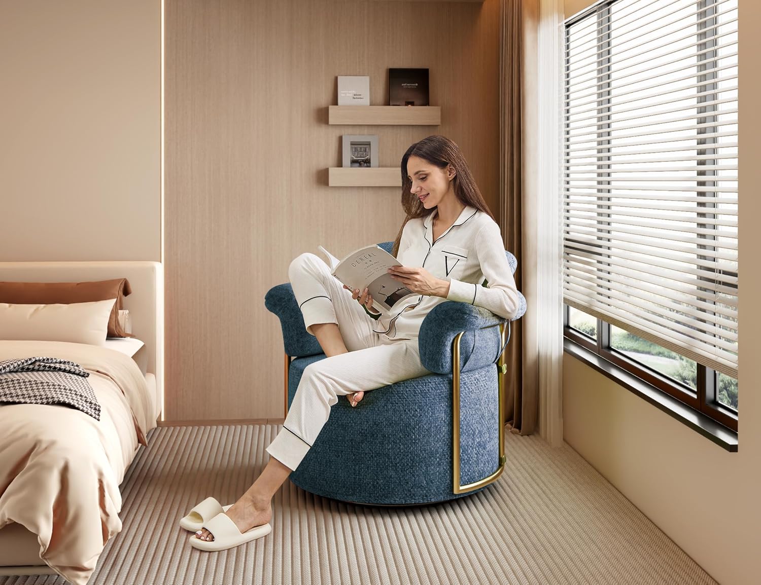 - Effortless 360° Rotation: This swivel lounge chair comes with a 360° swivel base that allows the round swivel chair to provide silky smooth swivel convenience. Smooth-swivel metal turntable and sturdy base allow seamless rotation for dynamic conversation, TV viewing, or workspace flexibility—no more straining to reach nearby items.
