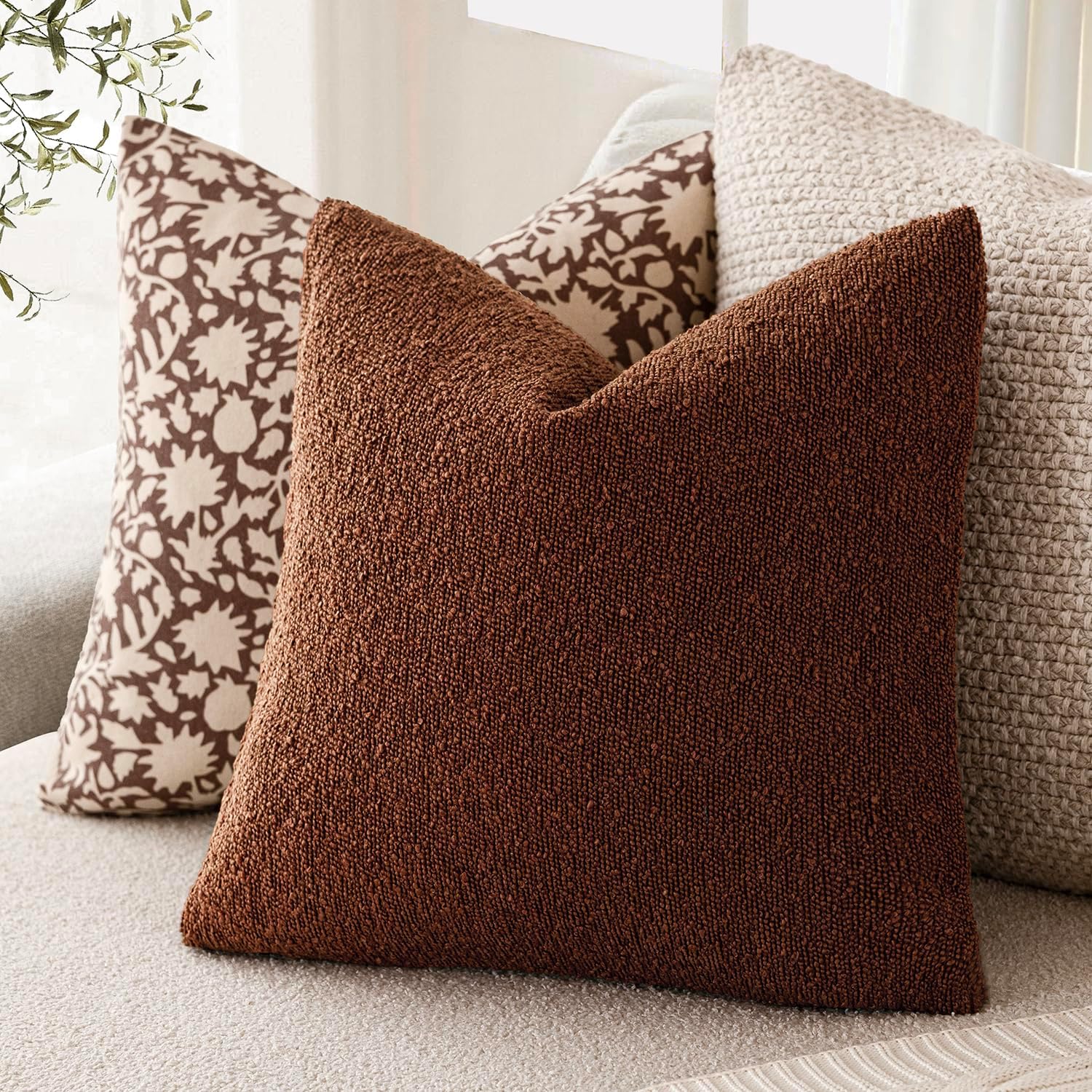 Foindtower Set of 2, Decorative Textured Boucle Throw Pillow Covers Accent Solid Pillow Cases Neutral Soft Cozy Couch Cushion Case for Chair Sofa Bedroom Living Room Home Decor 24x24 Inch Red Taupe