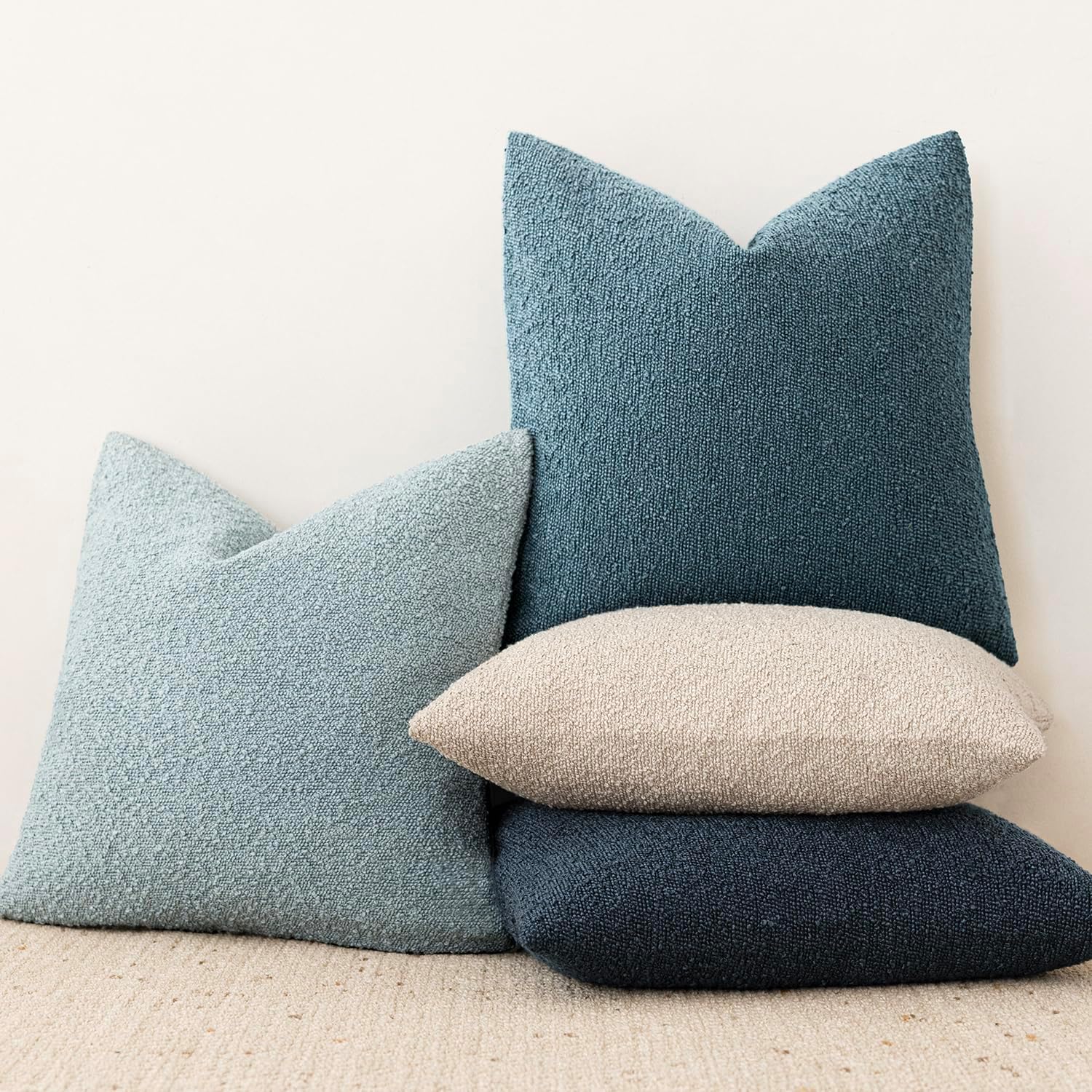 Foindtower Pack of 2 Textured Boucle Throw Pillow Covers Accent Solid Decorative Lumbar Pillow Cases Cozy Couch Cushion Case for Chair Sofa Bedroom Living Room Home Decor 12x20 Inch Misty Blue