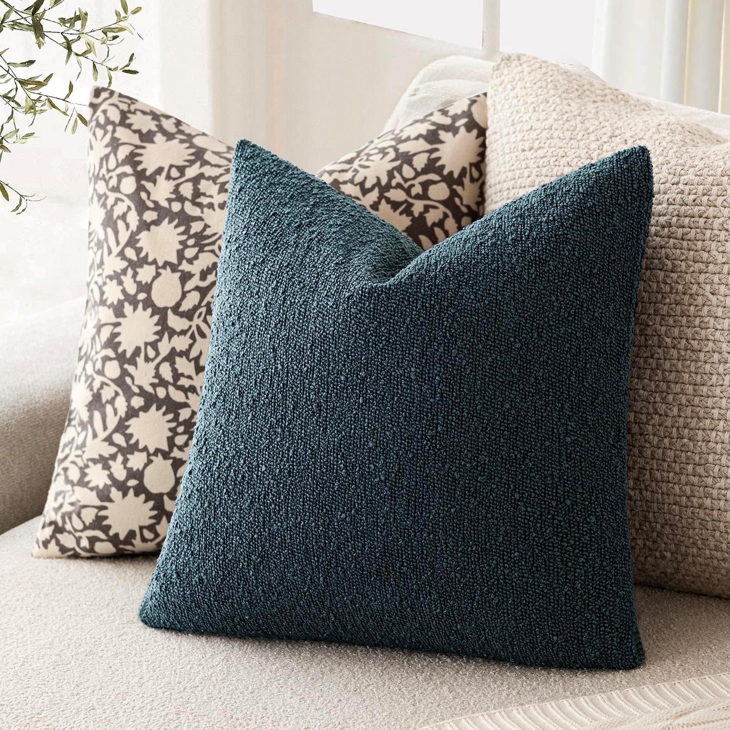 Foindtower Pack of 2 Textured Boucle Throw Pillow Covers Accent Solid Pillow Cases Cozy Soft Decorative Couch Cushion Case for Chair Sofa Bedroom Living Room Home Decor 18x18 Inch Dark Blue