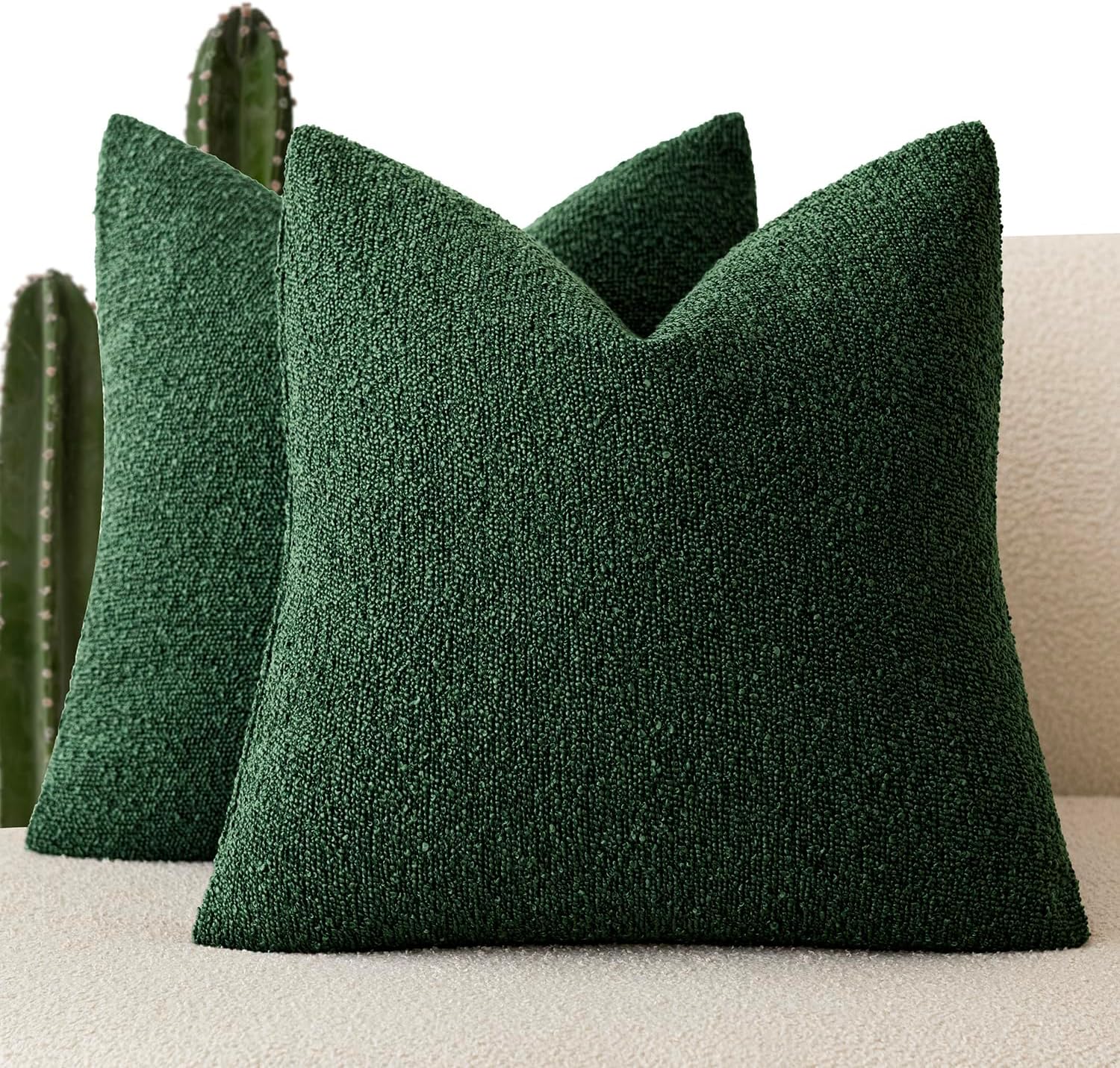 Foindtower Set of 2, Decorative Textured Boucle Throw Pillow Covers Accent Solid Pillow Cases Neutral Cozy Couch Cushion Case for Chair Sofa Bedroom Living Room Home Decor 26x26 Inch Pine Green