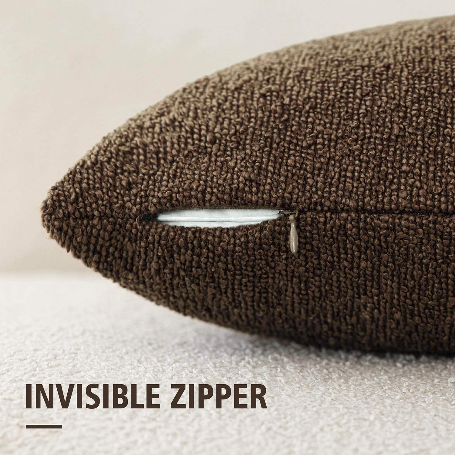 Foindtower Pack of 2 Textured Boucle Throw Pillow Covers Accent Solid Decorative Lumbar Pillow Cases Cozy Couch Cushion Case for Chair Sofa Bedroom Living Room Home Decor 12x20 Inch Chocolate