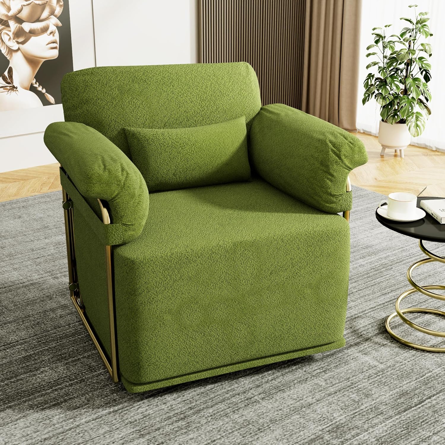 - Modern Elegance, Versatile Style: This living room swivel chair is very lightweight and easy to move. Golden metal frame and square barrel silhouette add minimalist luxe to any space. Ideal as a living room accent chair, bedroom lounger, office seating, or compact apartment solution.