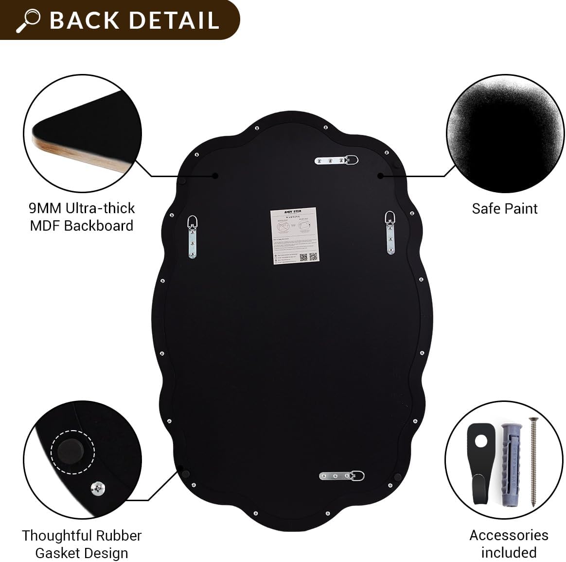 ANDY STAR Matte Black Scalloped Wall Mirror -24x36 Irregular Bathroom Vanity Mirror for Vanity, Living Room & Entryway, Anti Rust Stainless Steel Wall Mount Horizontal or Vertical