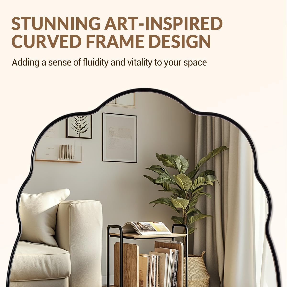 - SOPHISTICATED CURVED DESIGN: Featuring mesmerizing asymmetry and artfully irregular contours, this black oval vanity mirror is a true masterpiece. Designed to harmonize with any interior—be it modern, minimalist, farmhouse, or eclectic—this oval vanity mirror elevates your space with distinctive charm and artistic flair