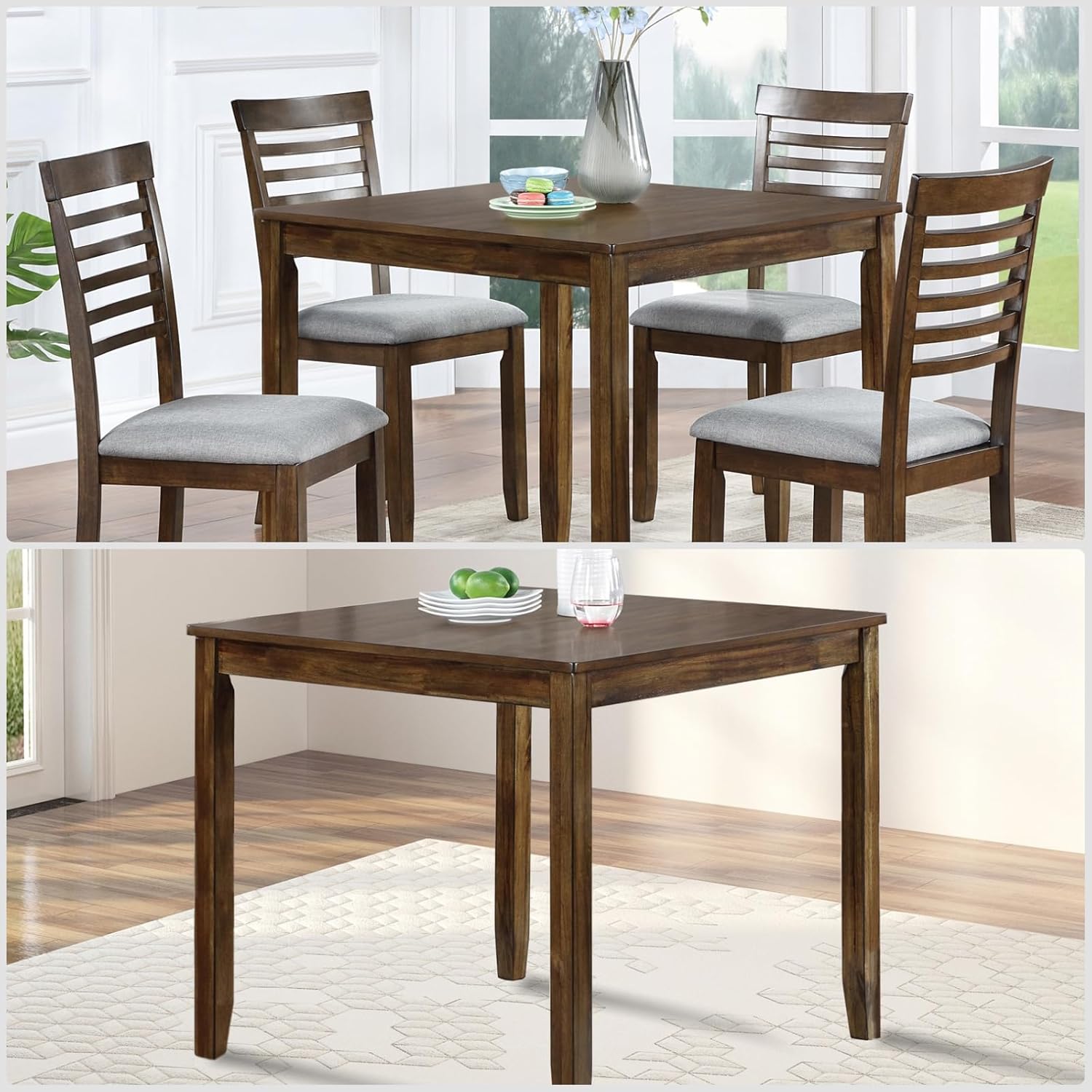 - Compact Square Design:Perfect for small spaces, this 34.5" square dining table comfortably seats four.The slim tapered legs provide stability without crowding your dining area, while the 30" standard height pairs perfectly with most chairs