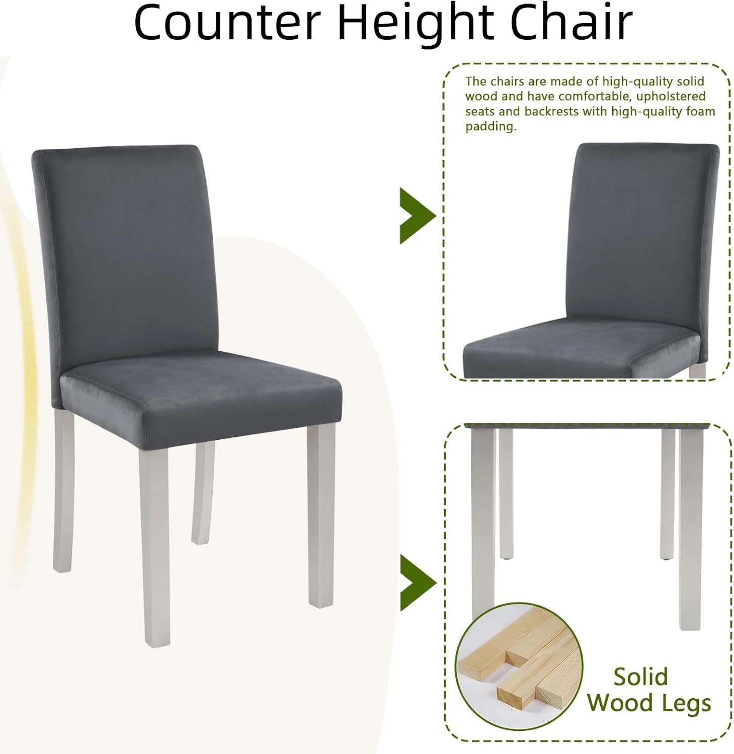 - Comfortable Upholstered Seating:Four chairs (35"H) with backrests and wide cushions provide ergonomic support.The 330lb weight capacity ensures stability for all users