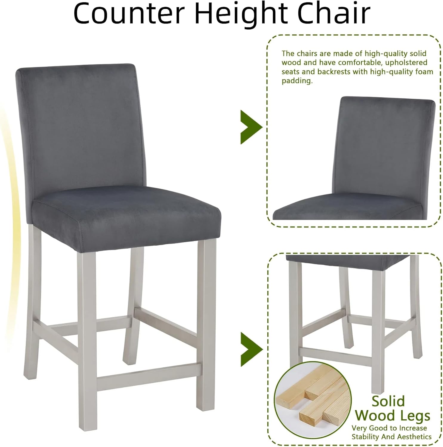 - Comfortable Upholstered Seating:Four chairs (37"H) with backrests and wide cushions provide ergonomic support.The 330lb weight capacity ensures stability for all users