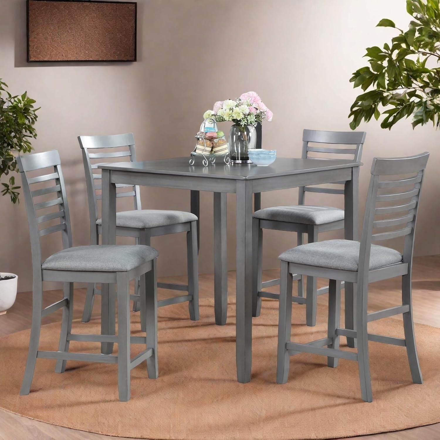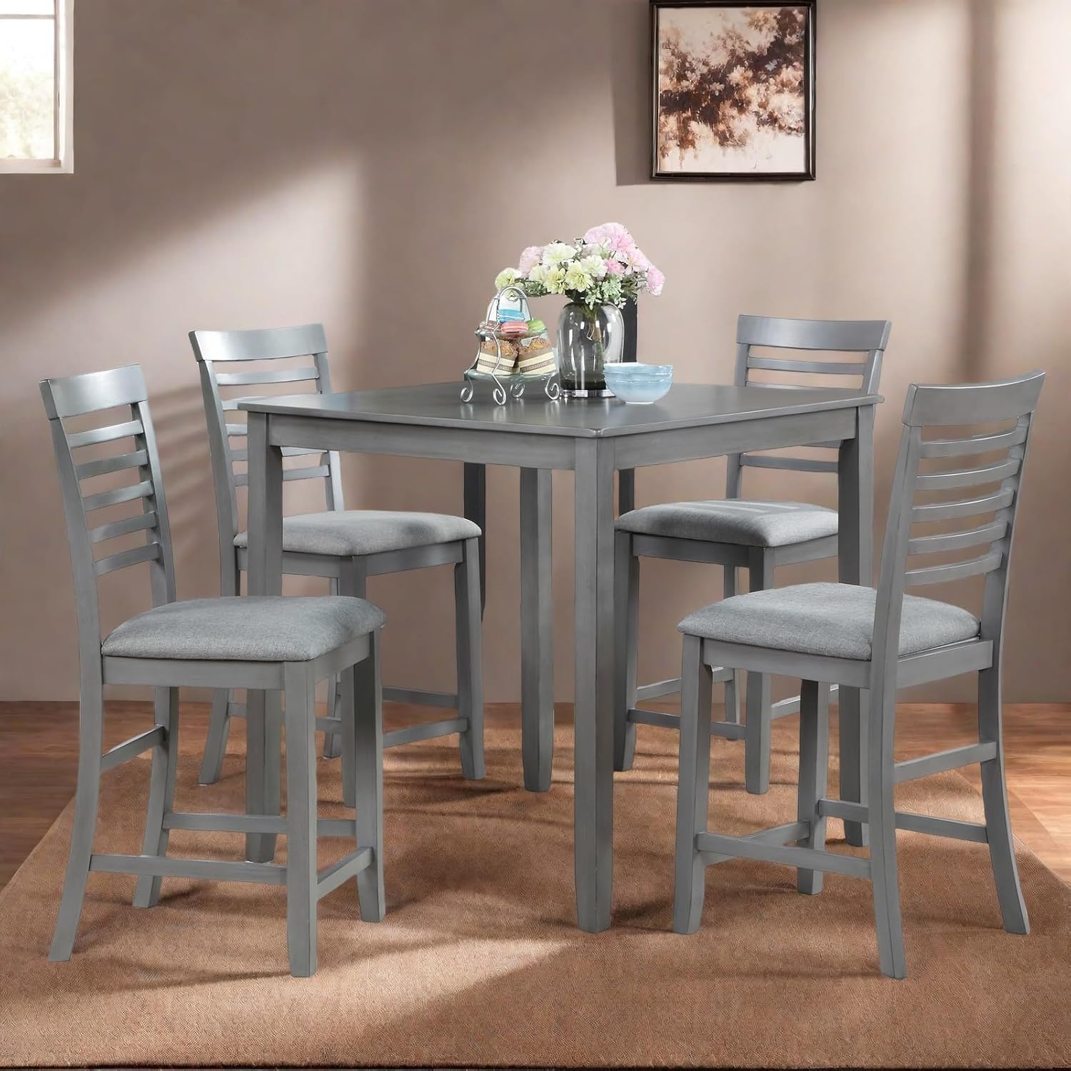 Dining Table Set for 4, Modern 5 Piece Dining Room Table Set with Square Table & 4 Ladder Backrest Upholstered Chairs, Counter Height Kitchen Chairs Set for Small Space, Gray