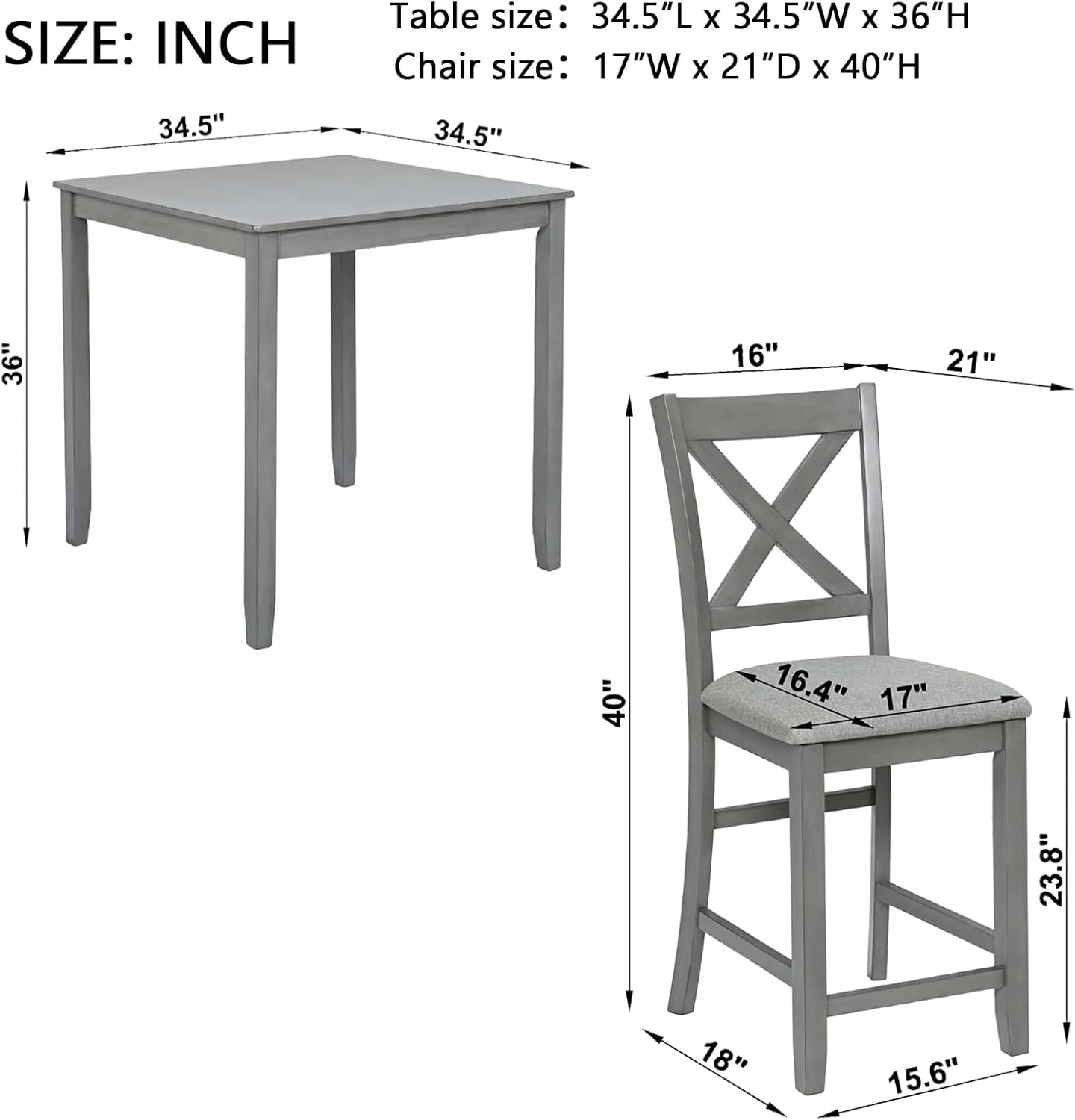 - Space-Saving Counter-Height Design:This 34.5" square table (36"H) creates an ideal breakfast nook with chairs (17"W x 21"D x 40"H) that tuck neatly underneath, perfect for small spaces while maintaining a modern aesthetic