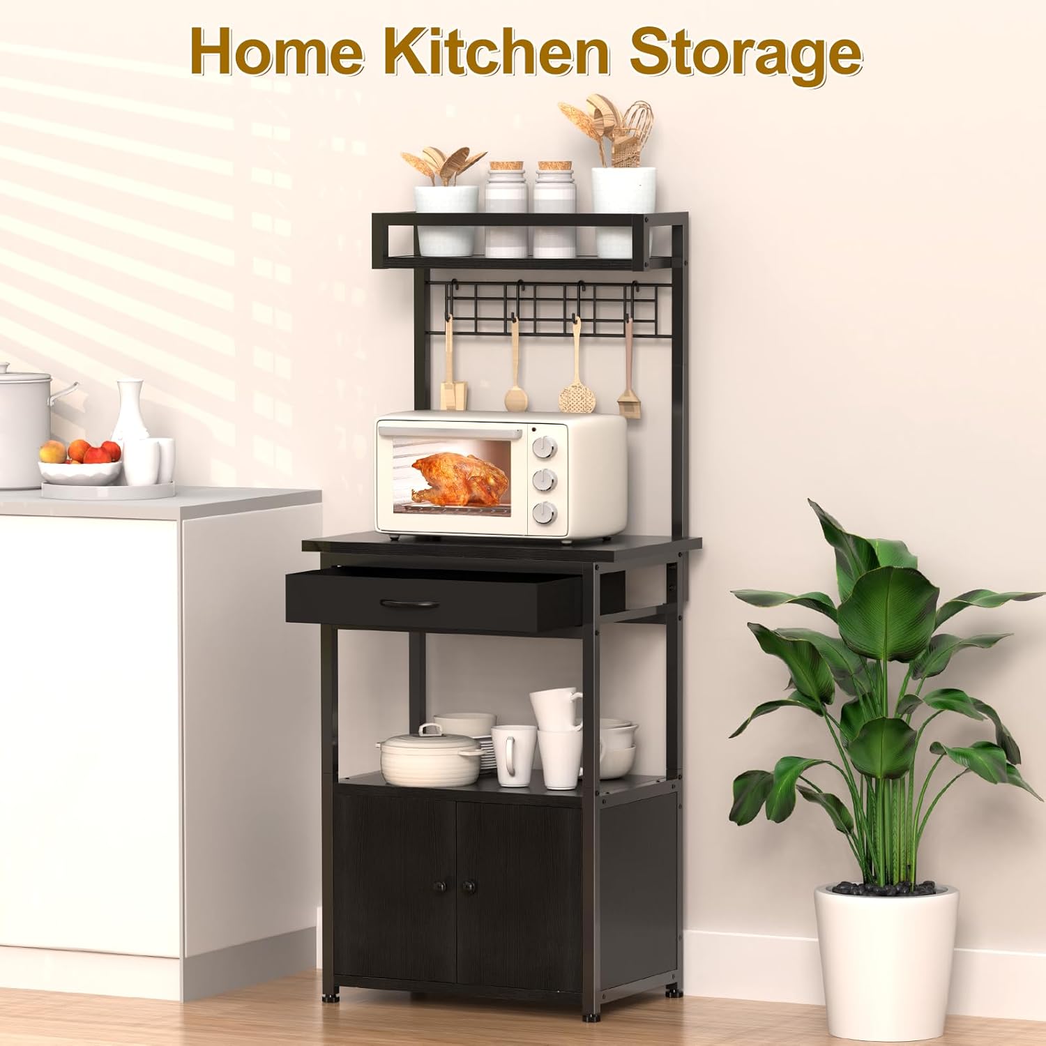 - Kitchen Coffee Bar: This versatile 5-tier coffee bar and microwave stand features a spacious top for your coffee maker, microwave, and décor, plus an integrated storage cabinet with two dust-proof doors, a drawer, and four hooks—keeping everything from coffee beans to snacks neatly organized in one convenient spot