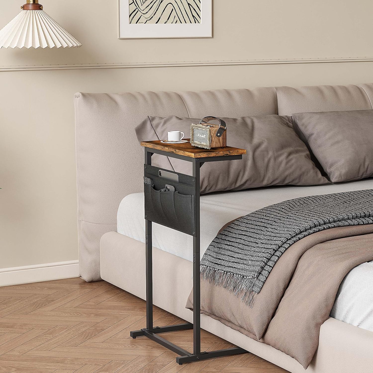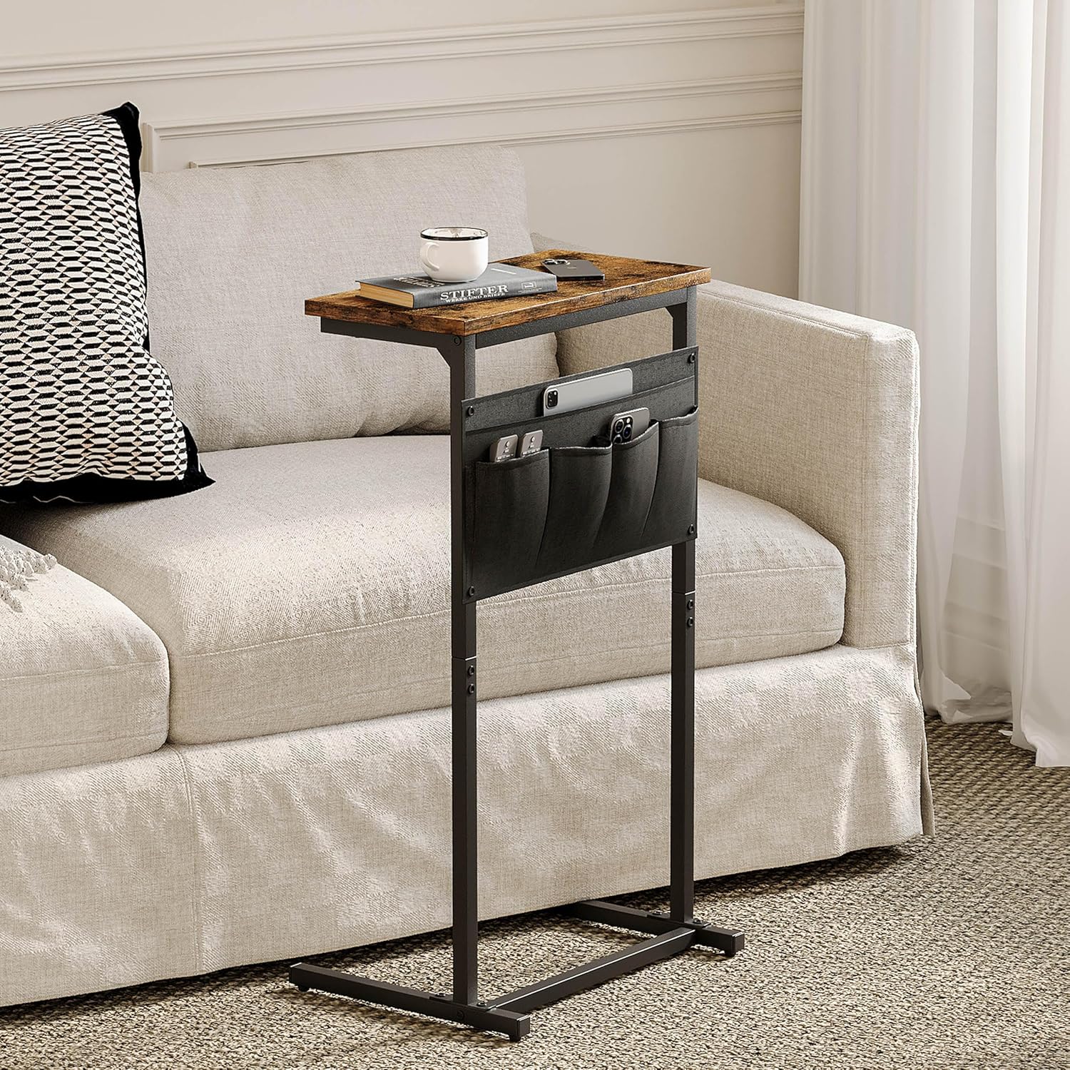 C Shaped End Table, Side Table for Sofa, Small TV Tray, Couch Table with Storage Bag for Small Space, Living Room, Bedroom, Home Office LET501R (Rustic Brown)